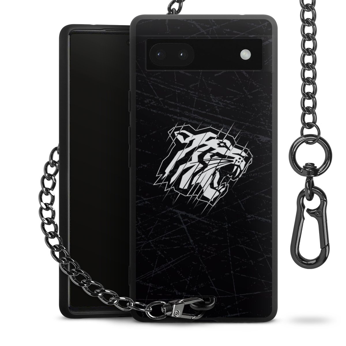 Die mattschwarze Silikon-Handyhülle besteht aus robustem TPU (thermoplastisches Polyurethan). Sie ist flexibel und schützt Dein Smartphone vor Stößen und Kratzern. Die Kette sowie der Karabinerhaken sind aus Metall in Gunmetal-Optik gefertigt. Für dieses Produkt kommen ausschließlich TÜV-geprüfte Materialien zum Einsatz.