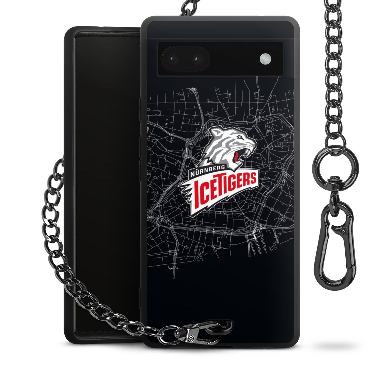 Die mattschwarze Silikon-Handyhülle besteht aus robustem TPU (thermoplastisches Polyurethan). Sie ist flexibel und schützt Dein Smartphone vor Stößen und Kratzern. Die Kette sowie der Karabinerhaken sind aus Metall in Gunmetal-Optik gefertigt. Für dieses Produkt kommen ausschließlich TÜV-geprüfte Materialien zum Einsatz.