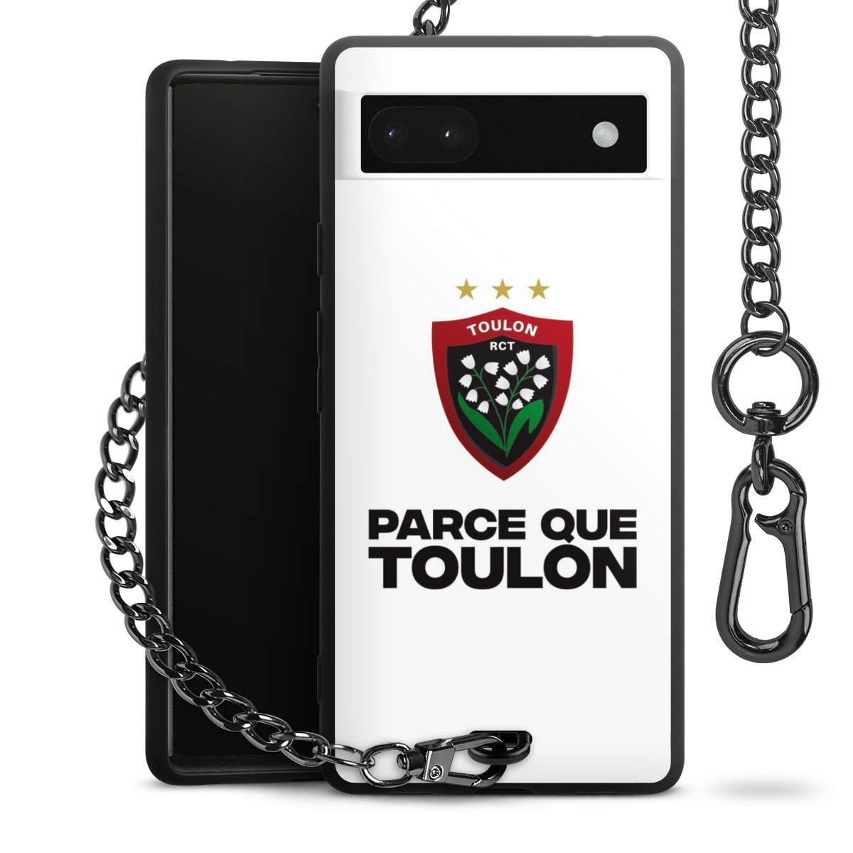 Die mattschwarze Silikon-Handyhülle besteht aus robustem TPU (thermoplastisches Polyurethan). Sie ist flexibel und schützt Dein Smartphone vor Stößen und Kratzern. Die Kette sowie der Karabinerhaken sind aus Metall in Gunmetal-Optik gefertigt. Für dieses Produkt kommen ausschließlich TÜV-geprüfte Materialien zum Einsatz.