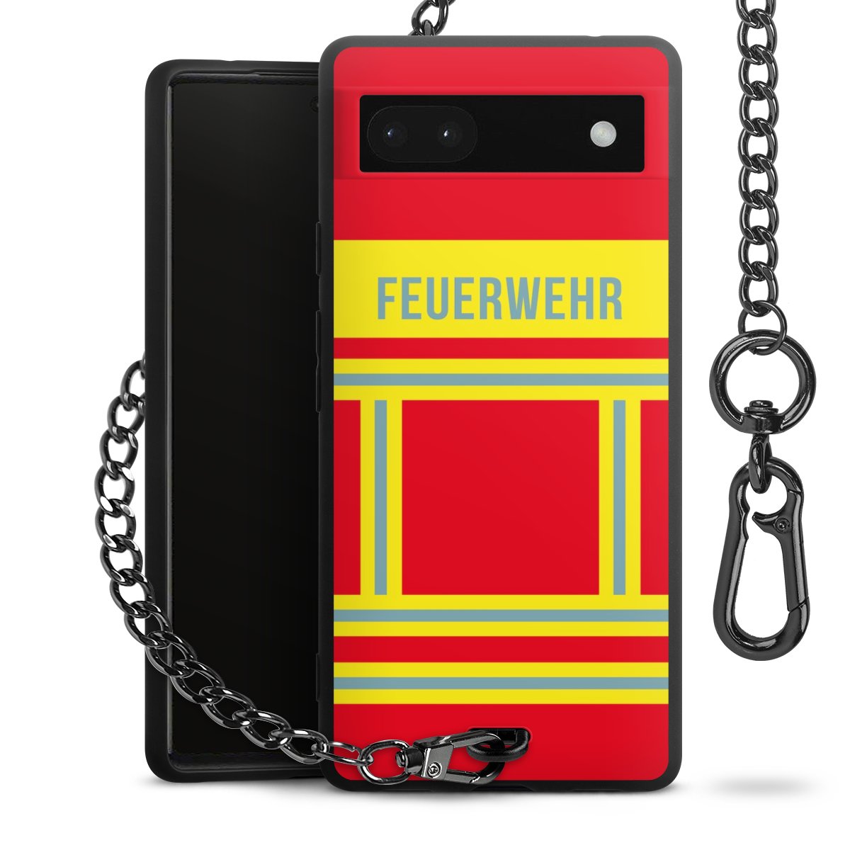 - Mattschwarze Handyhülle mit Metallkette