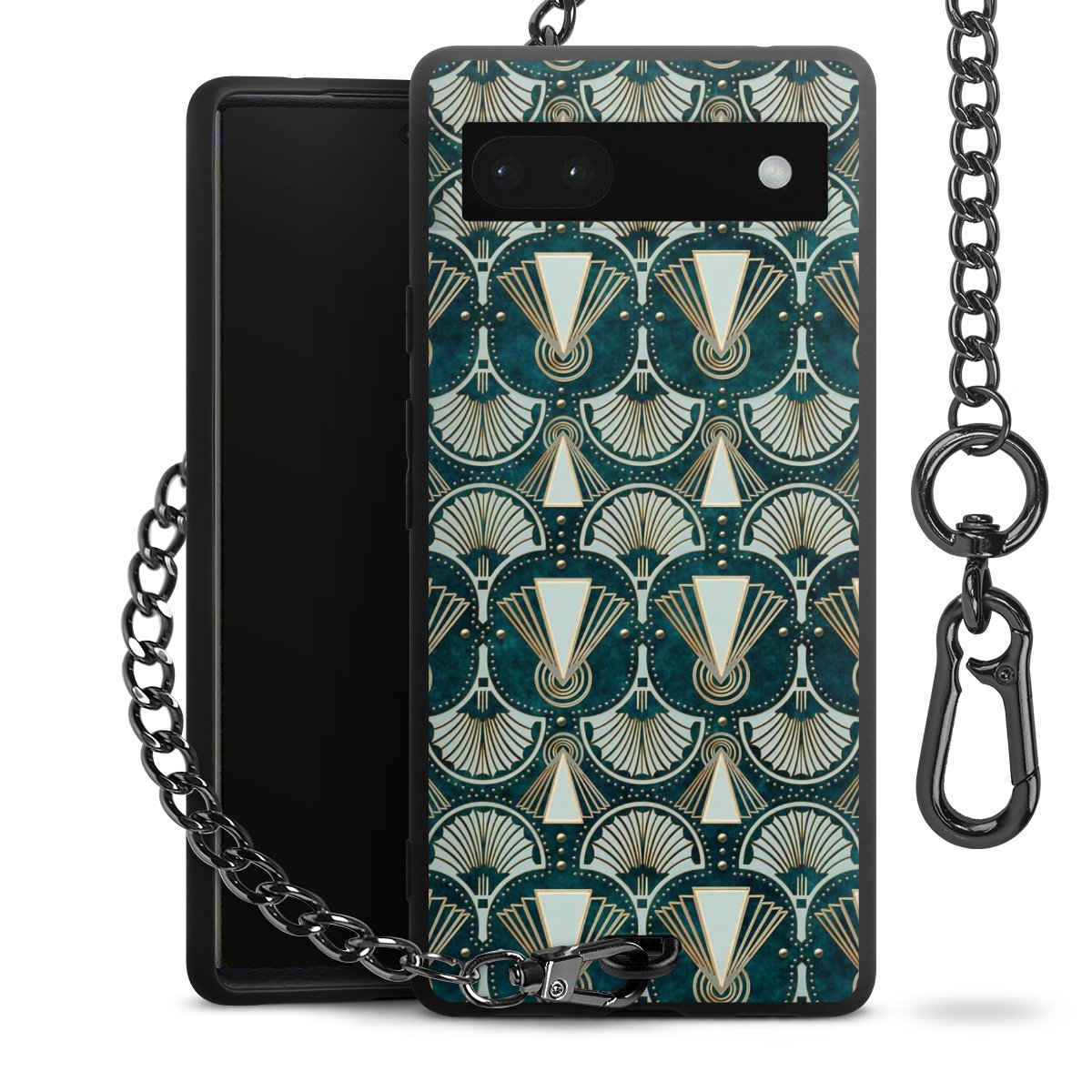 Die mattschwarze Silikon-Handyhülle besteht aus robustem TPU (thermoplastisches Polyurethan). Sie ist flexibel und schützt Dein Smartphone vor Stößen und Kratzern. Die Kette sowie der Karabinerhaken sind aus Metall in Gunmetal-Optik gefertigt. Für dieses Produkt kommen ausschließlich TÜV-geprüfte Materialien zum Einsatz.