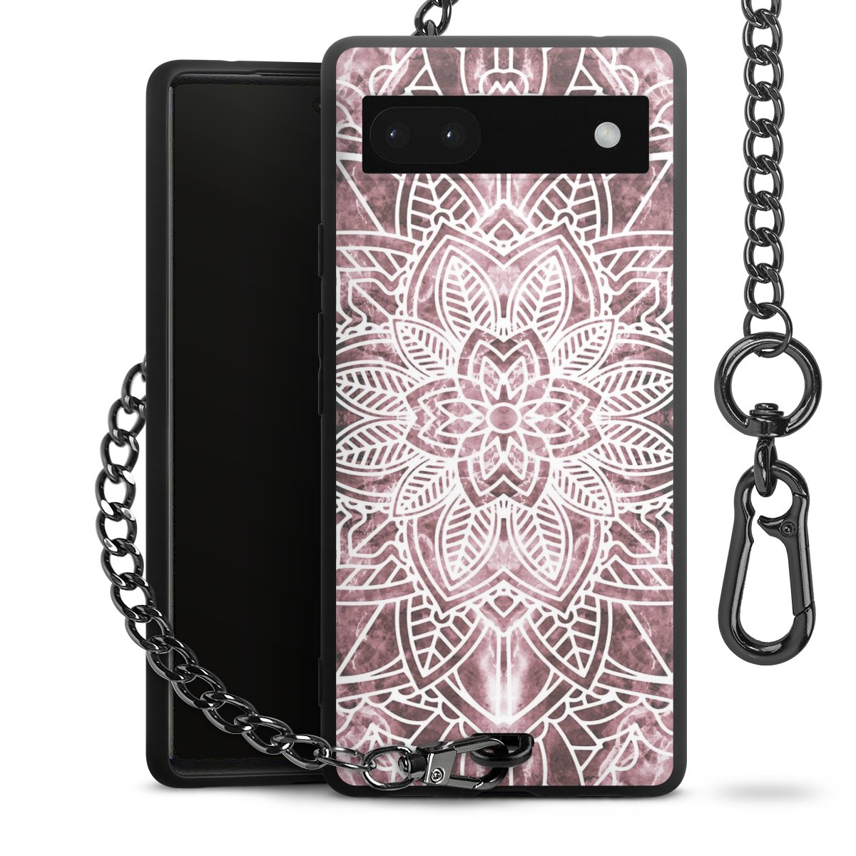 Die mattschwarze Silikon-Handyhülle besteht aus robustem TPU (thermoplastisches Polyurethan). Sie ist flexibel und schützt Dein Smartphone vor Stößen und Kratzern. Die Kette sowie der Karabinerhaken sind aus Metall in Gunmetal-Optik gefertigt. Für dieses Produkt kommen ausschließlich TÜV-geprüfte Materialien zum Einsatz.