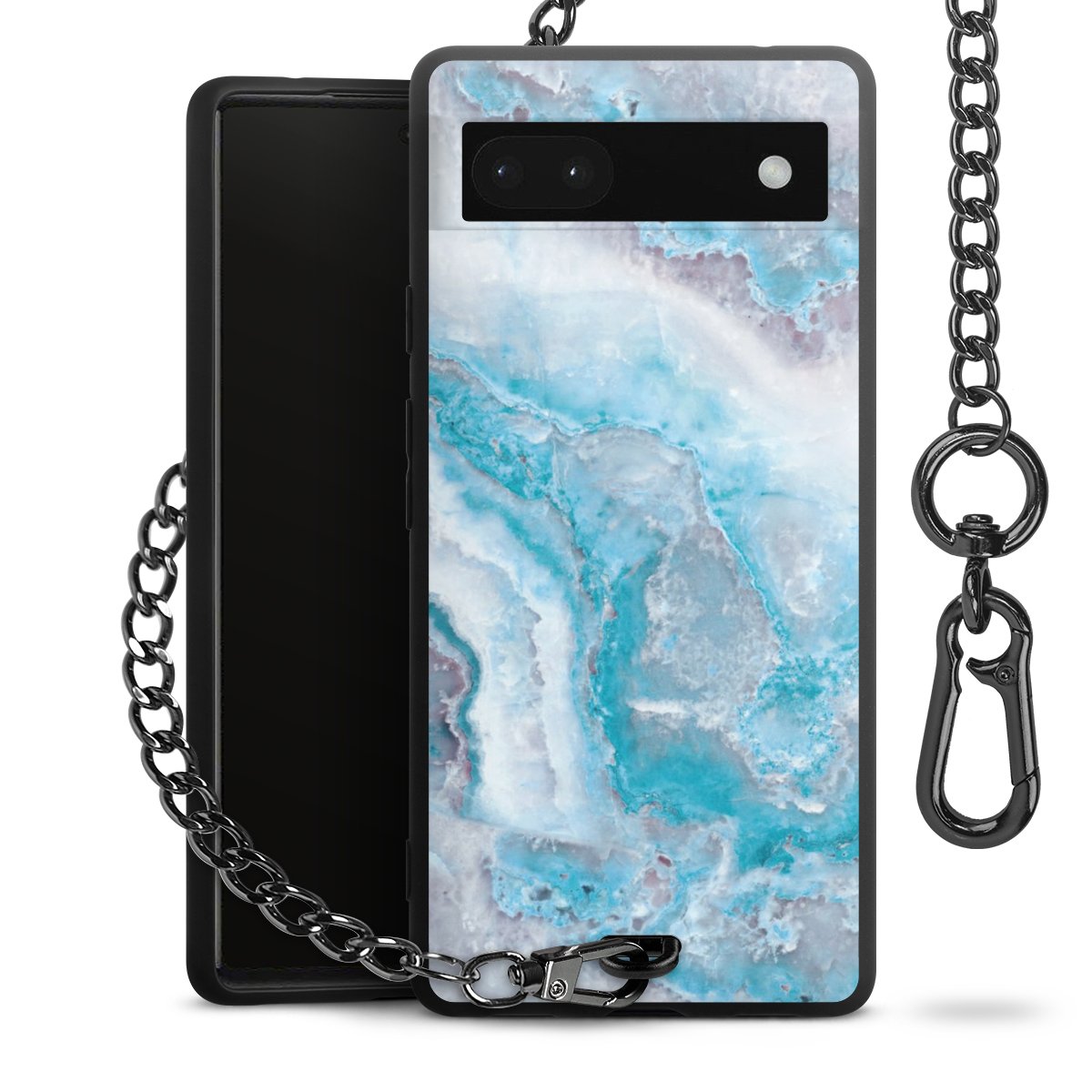 • Mattschwarze Handyhülle mit Metallkette