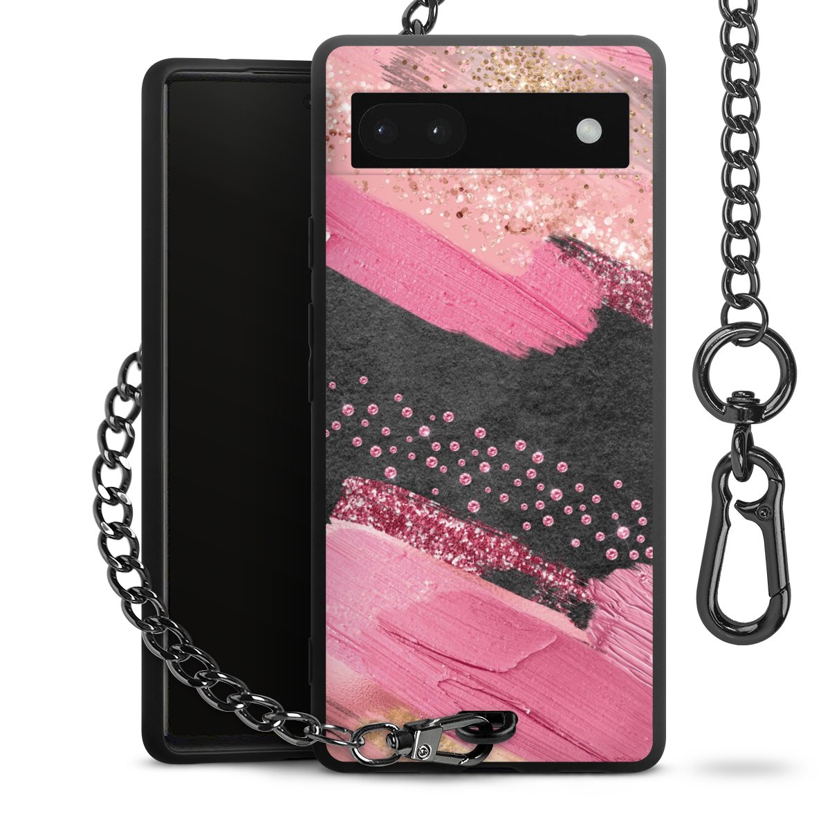 • Mattschwarze Handyhülle mit Metallkette