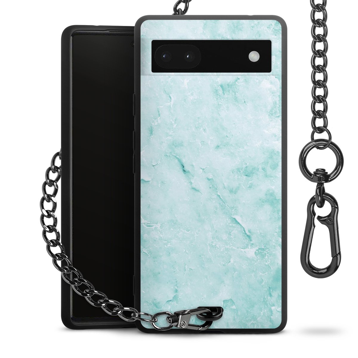 Die mattschwarze Silikon-Handyhülle besteht aus robustem TPU (thermoplastisches Polyurethan). Sie ist flexibel und schützt Dein Smartphone vor Stößen und Kratzern. Die Kette sowie der Karabinerhaken sind aus Metall in Gunmetal-Optik gefertigt. Für dieses Produkt kommen ausschließlich TÜV-geprüfte Materialien zum Einsatz.