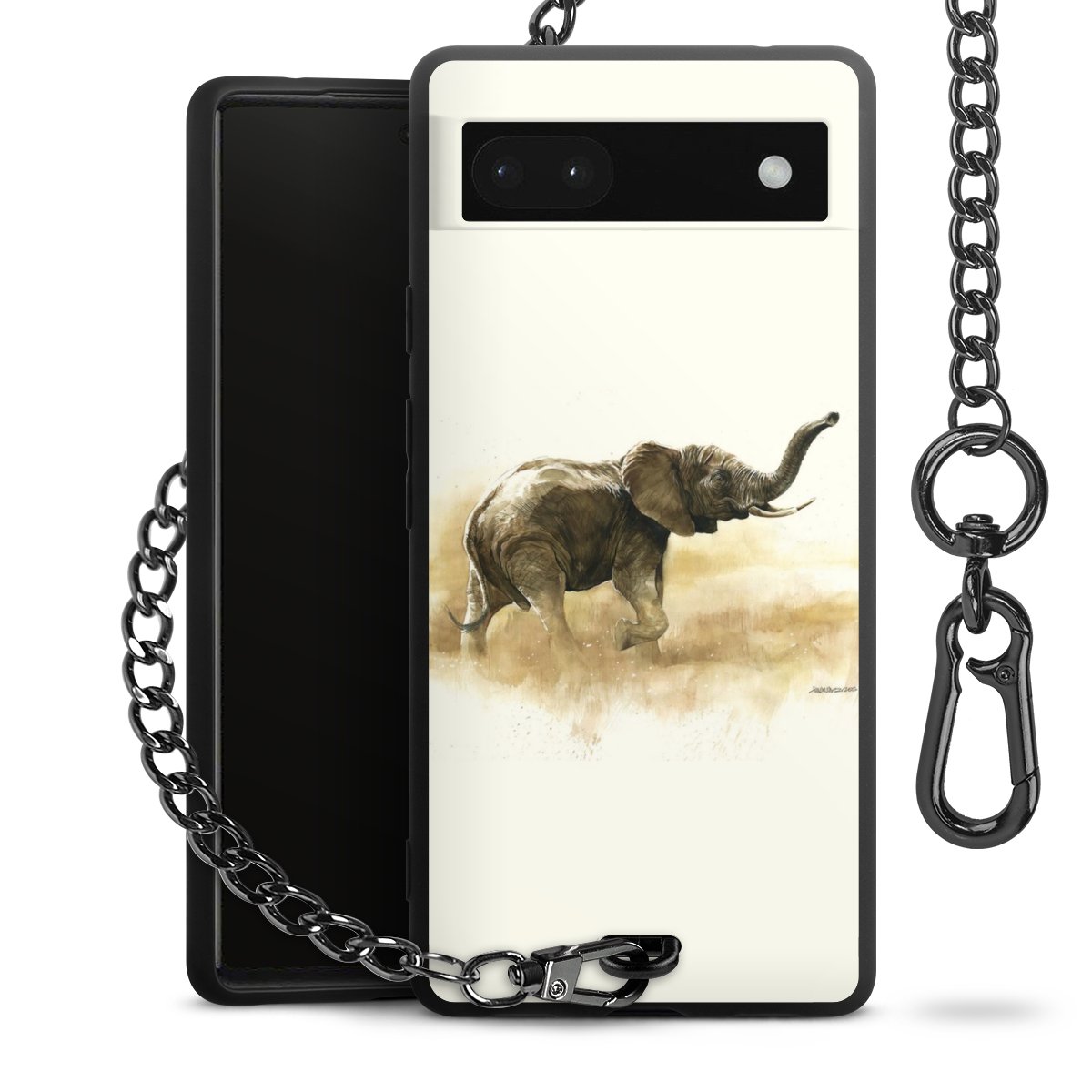 Die mattschwarze Silikon-Handyhülle besteht aus robustem TPU (thermoplastisches Polyurethan). Sie ist flexibel und schützt Dein Smartphone vor Stößen und Kratzern. Die Kette sowie der Karabinerhaken sind aus Metall in Gunmetal-Optik gefertigt. Für dieses Produkt kommen ausschließlich TÜV-geprüfte Materialien zum Einsatz.