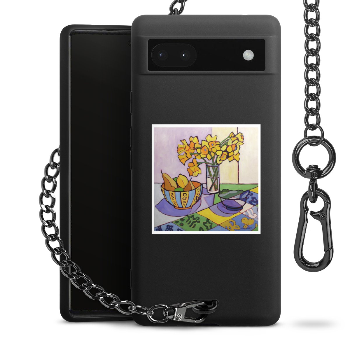 - Mattschwarze Handyhülle mit Metallkette