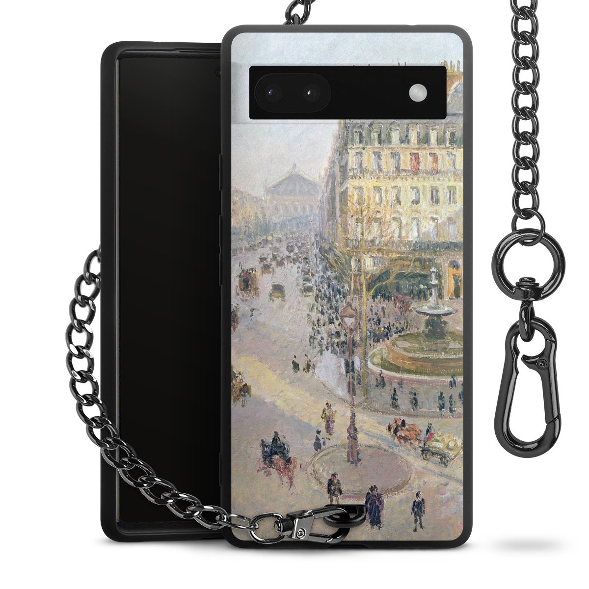 • Mattschwarze Handyhülle mit Metallkette