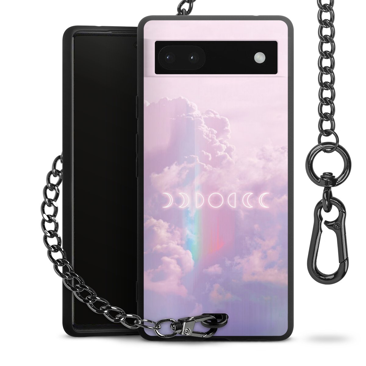 Die mattschwarze Silikon-Handyhülle besteht aus robustem TPU (thermoplastisches Polyurethan). Sie ist flexibel und schützt Dein Smartphone vor Stößen und Kratzern. Die Kette sowie der Karabinerhaken sind aus Metall in Gunmetal-Optik gefertigt. Für dieses Produkt kommen ausschließlich TÜV-geprüfte Materialien zum Einsatz.