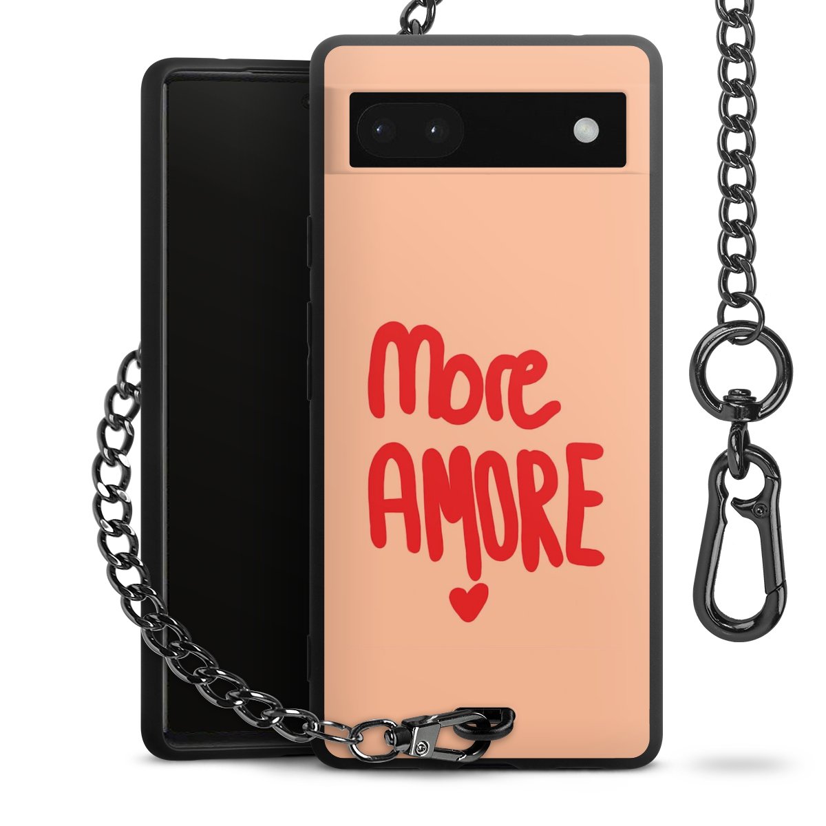 • Mattschwarze Handyhülle mit Metallkette