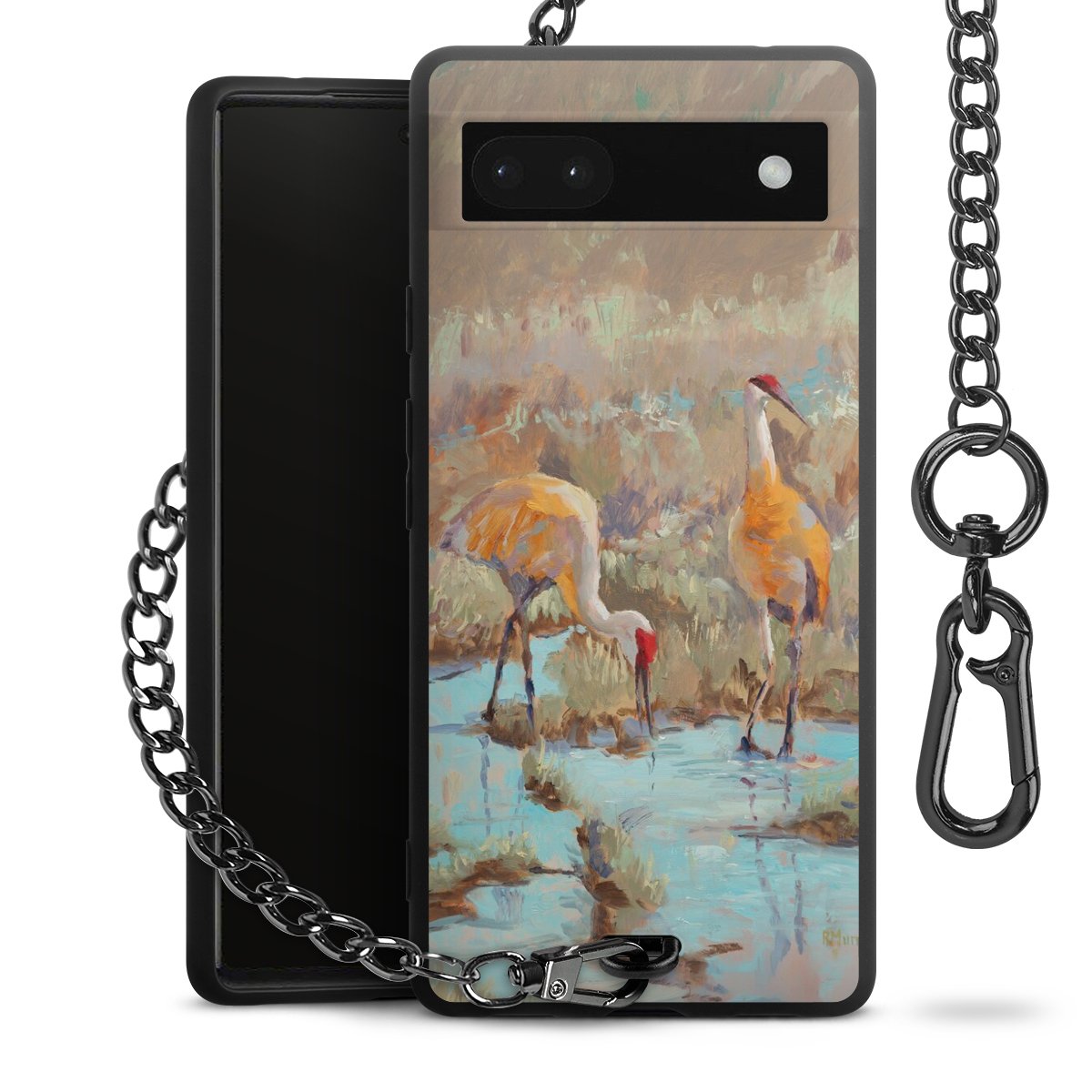 - Mattschwarze Handyhülle mit Metallkette