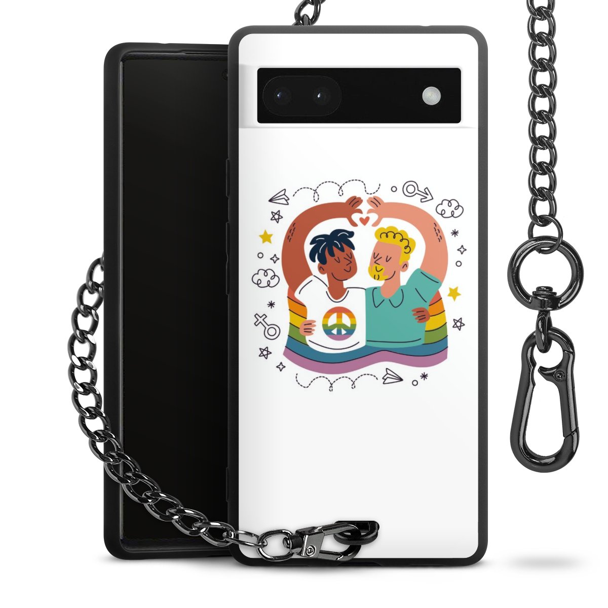 Die mattschwarze Silikon-Handyhülle besteht aus robustem TPU (thermoplastisches Polyurethan). Sie ist flexibel und schützt Dein Smartphone vor Stößen und Kratzern. Die Kette sowie der Karabinerhaken sind aus Metall in Gunmetal-Optik gefertigt. Für dieses Produkt kommen ausschließlich TÜV-geprüfte Materialien zum Einsatz.