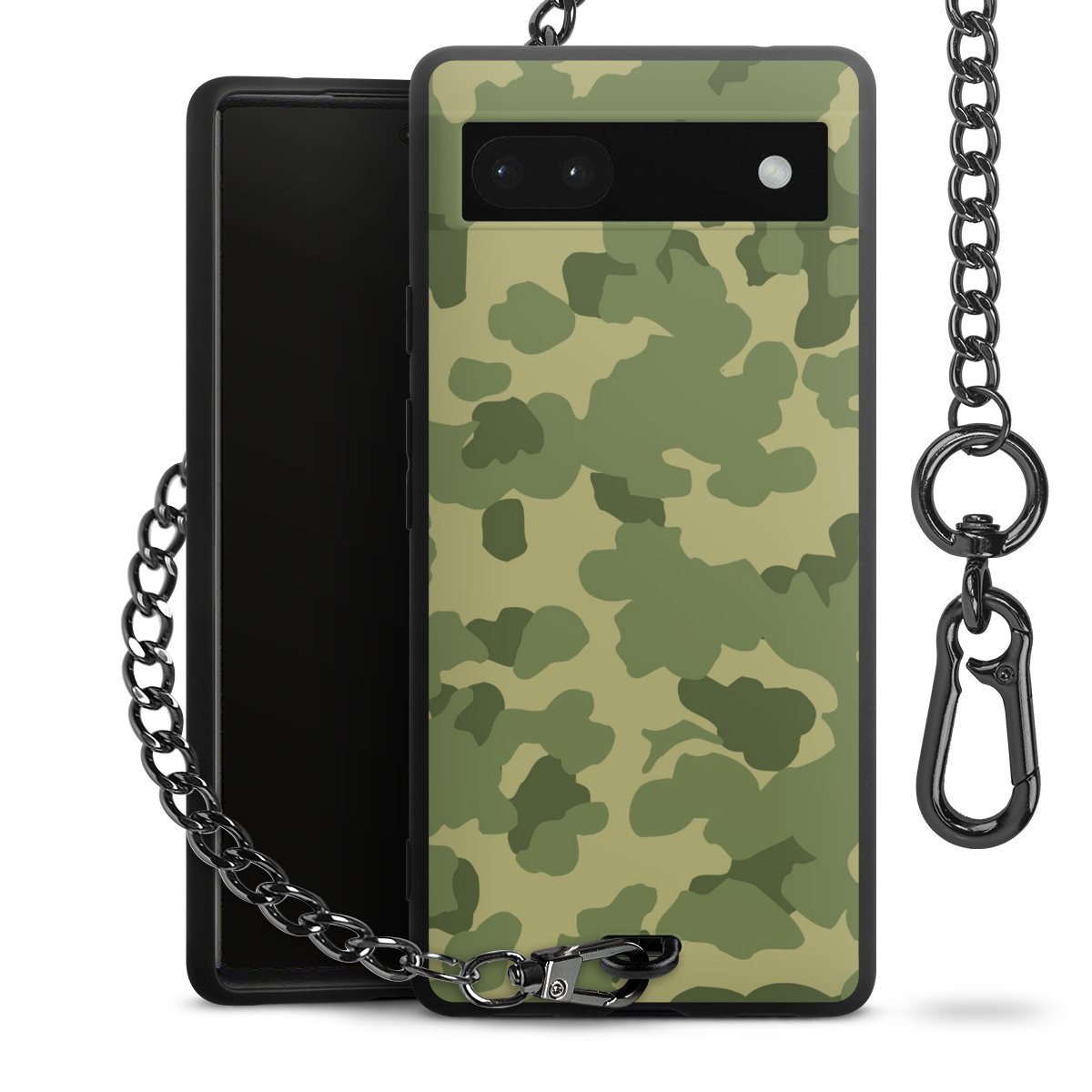Die mattschwarze Silikon-Handyhülle besteht aus robustem TPU (thermoplastisches Polyurethan). Sie ist flexibel und schützt Dein Smartphone vor Stößen und Kratzern. Die Kette sowie der Karabinerhaken sind aus Metall in Gunmetal-Optik gefertigt. Für dieses Produkt kommen ausschließlich TÜV-geprüfte Materialien zum Einsatz.