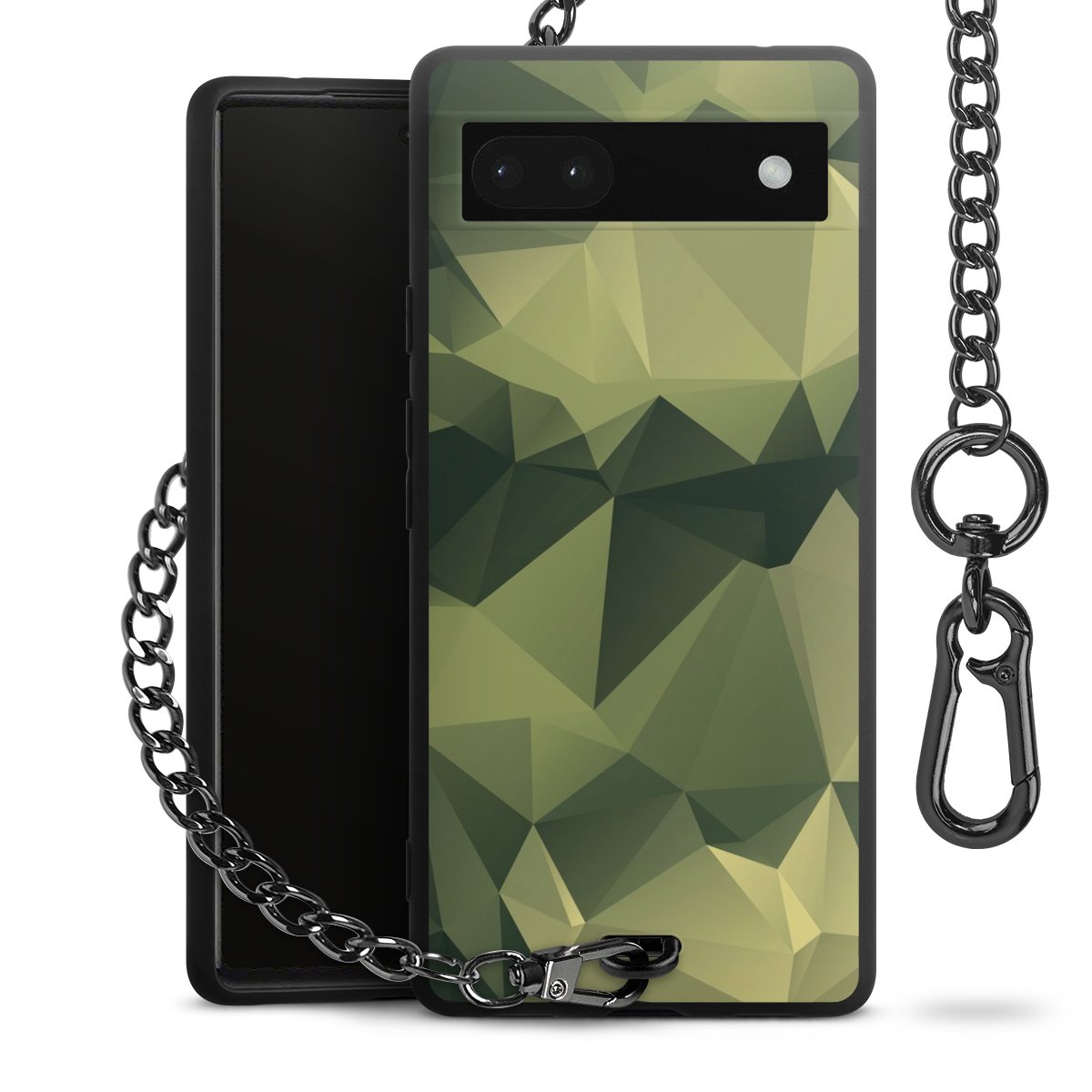 Die mattschwarze Silikon-Handyhülle besteht aus robustem TPU (thermoplastisches Polyurethan). Sie ist flexibel und schützt Dein Smartphone vor Stößen und Kratzern. Die Kette sowie der Karabinerhaken sind aus Metall in Gunmetal-Optik gefertigt. Für dieses Produkt kommen ausschließlich TÜV-geprüfte Materialien zum Einsatz.