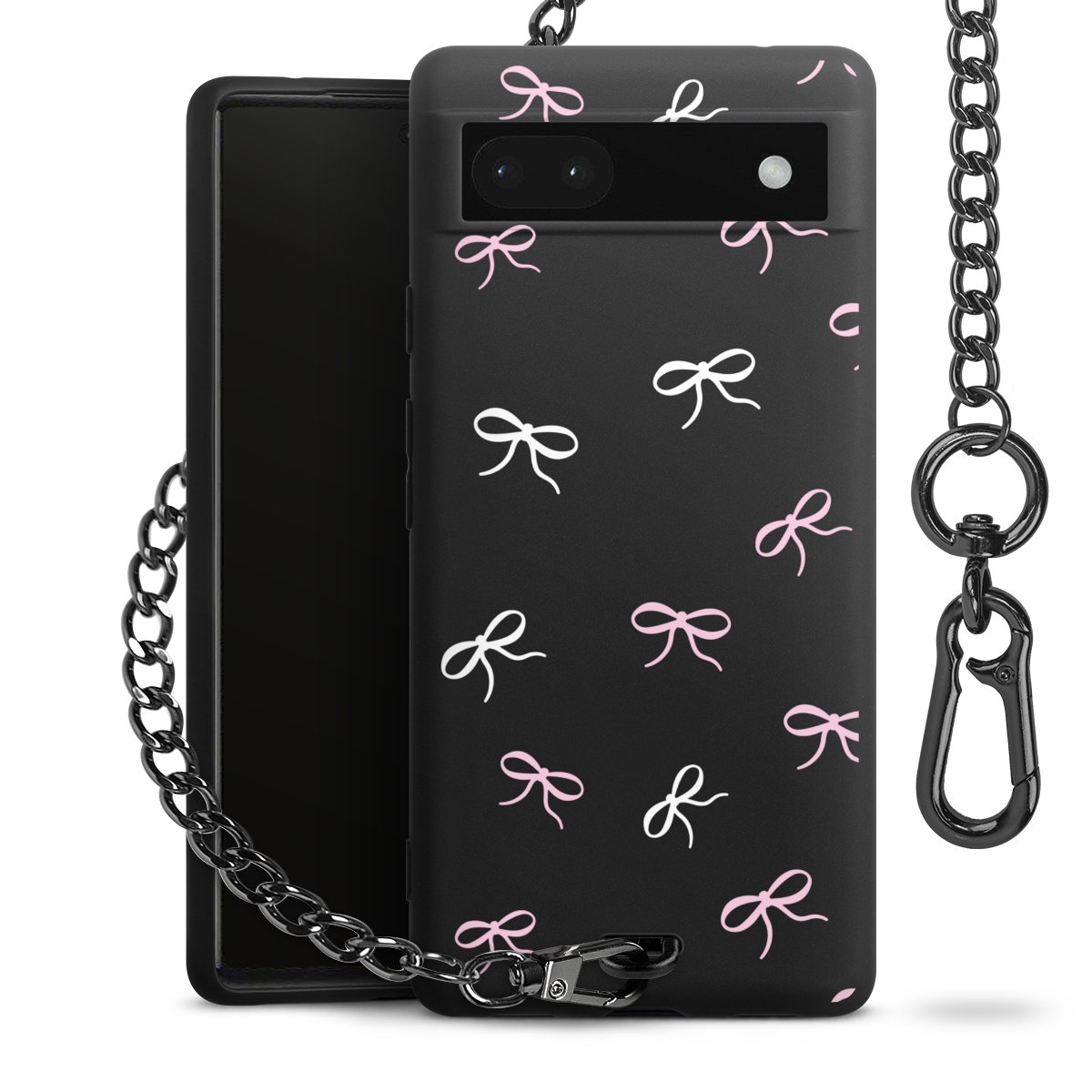 - Mattschwarze Handyhülle mit Metallkette