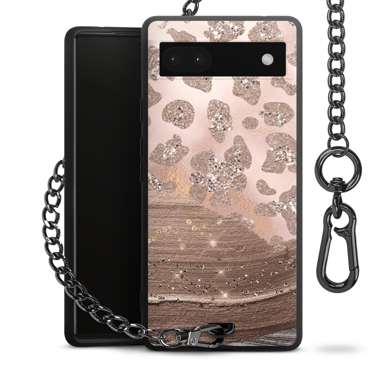 • Mattschwarze Handyhülle mit Metallkette