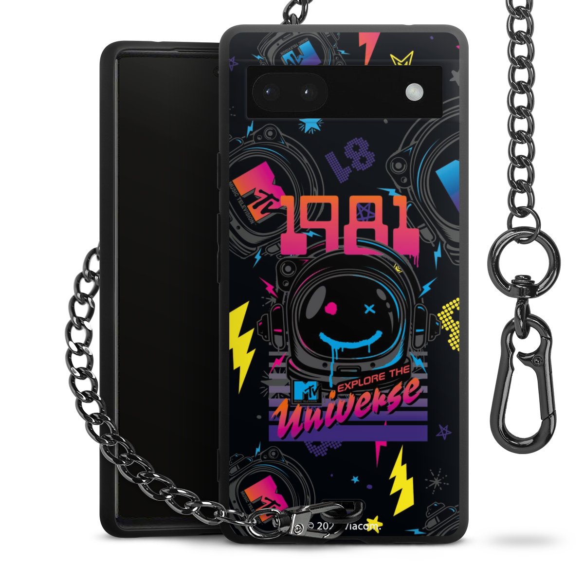Die mattschwarze Silikon-Handyhülle besteht aus robustem TPU (thermoplastisches Polyurethan). Sie ist flexibel und schützt Dein Smartphone vor Stößen und Kratzern. Die Kette sowie der Karabinerhaken sind aus Metall in Gunmetal-Optik gefertigt. Für dieses Produkt kommen ausschließlich TÜV-geprüfte Materialien zum Einsatz.