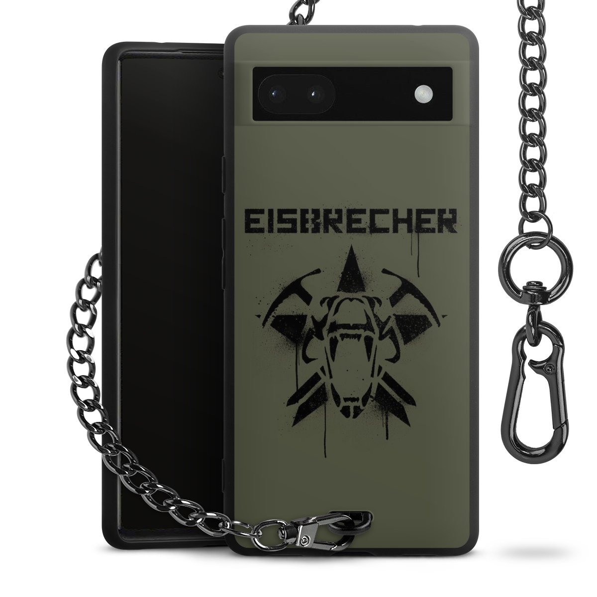 Die mattschwarze Silikon-Handyhülle besteht aus robustem TPU (thermoplastisches Polyurethan). Sie ist flexibel und schützt Dein Smartphone vor Stößen und Kratzern. Die Kette sowie der Karabinerhaken sind aus Metall in Gunmetal-Optik gefertigt. Für dieses Produkt kommen ausschließlich TÜV-geprüfte Materialien zum Einsatz.