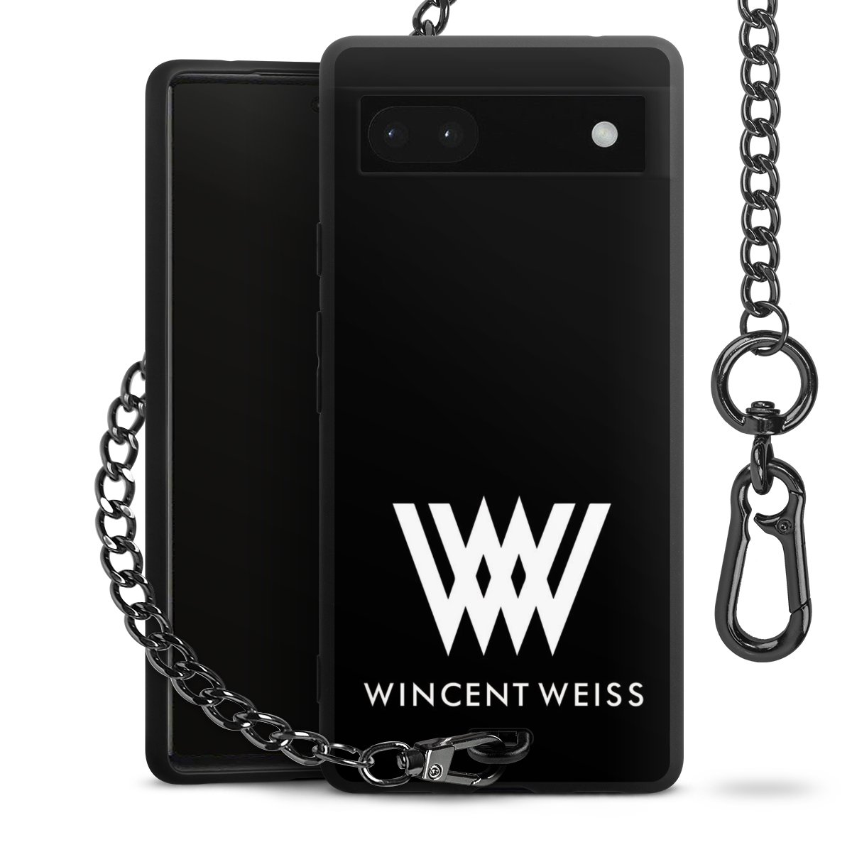 Die mattschwarze Silikon-Handyhülle besteht aus robustem TPU (thermoplastisches Polyurethan). Sie ist flexibel und schützt Dein Smartphone vor Stößen und Kratzern. Die Kette sowie der Karabinerhaken sind aus Metall in Gunmetal-Optik gefertigt. Für dieses Produkt kommen ausschließlich TÜV-geprüfte Materialien zum Einsatz.
