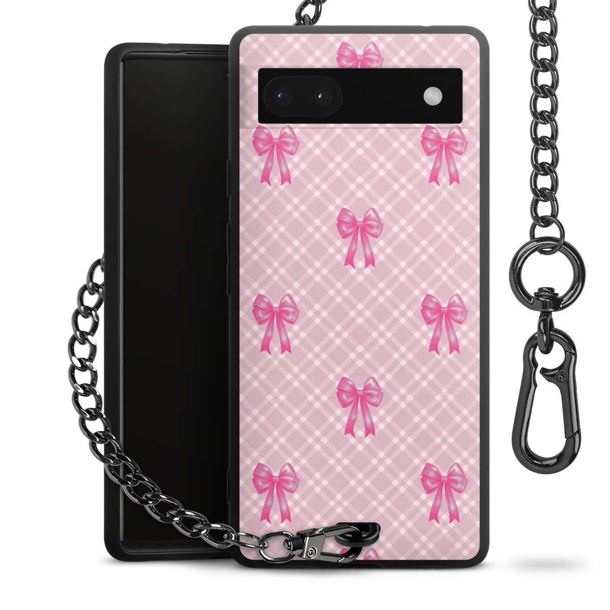 • Mattschwarze Handyhülle mit Metallkette