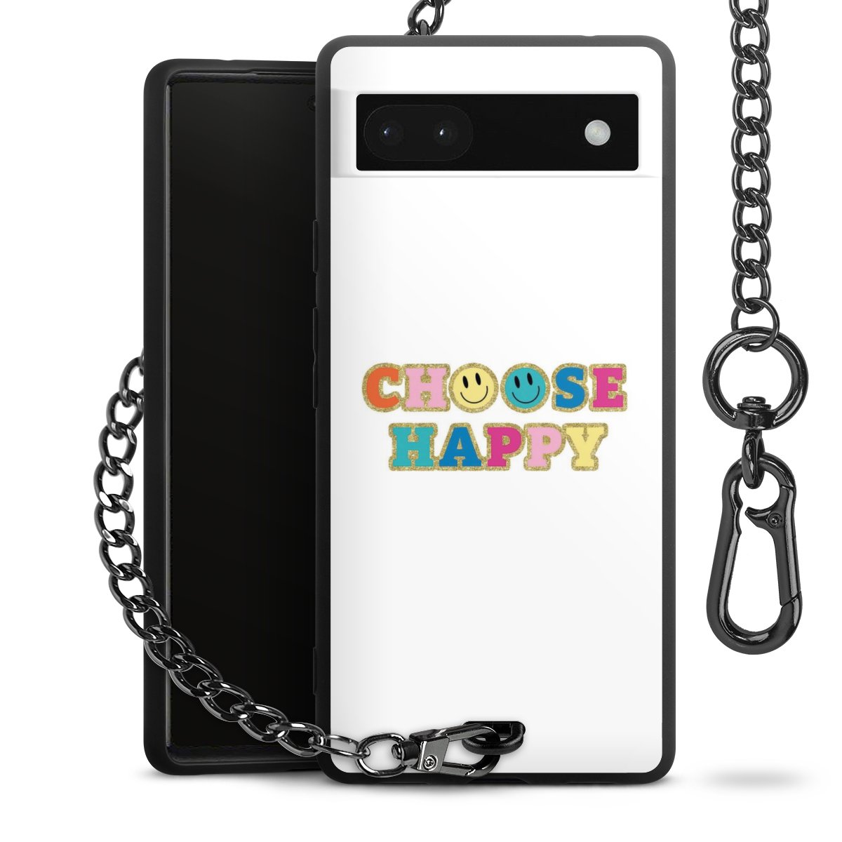 Die mattschwarze Silikon-Handyhülle besteht aus robustem TPU (thermoplastisches Polyurethan). Sie ist flexibel und schützt Dein Smartphone vor Stößen und Kratzern. Die Kette sowie der Karabinerhaken sind aus Metall in Gunmetal-Optik gefertigt. Für dieses Produkt kommen ausschließlich TÜV-geprüfte Materialien zum Einsatz.