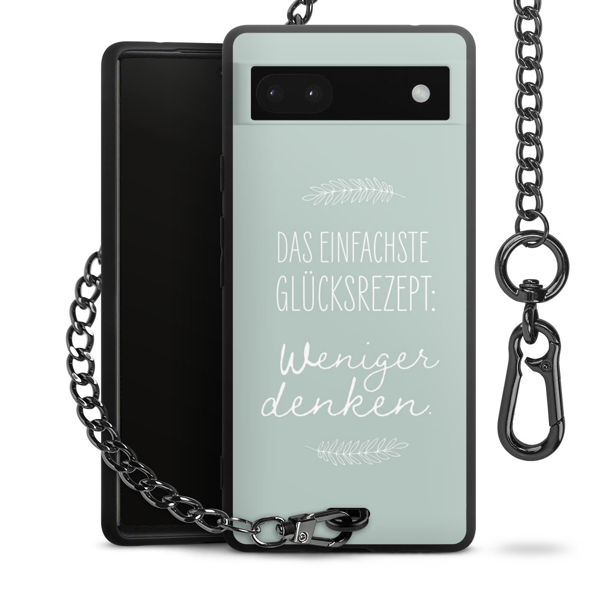 Die mattschwarze Silikon-Handyhülle besteht aus robustem TPU (thermoplastisches Polyurethan). Sie ist flexibel und schützt Dein Smartphone vor Stößen und Kratzern. Die Kette sowie der Karabinerhaken sind aus Metall in Gunmetal-Optik gefertigt. Für dieses Produkt kommen ausschließlich TÜV-geprüfte Materialien zum Einsatz.
