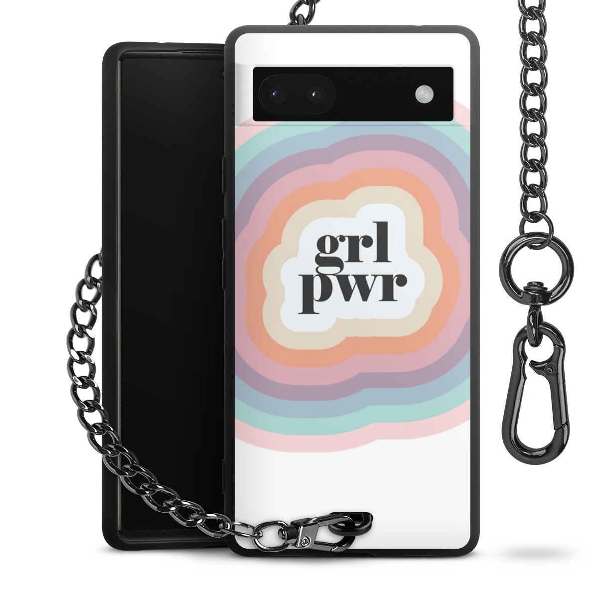 Die mattschwarze Silikon-Handyhülle besteht aus robustem TPU (thermoplastisches Polyurethan). Sie ist flexibel und schützt Dein Smartphone vor Stößen und Kratzern. Die Kette sowie der Karabinerhaken sind aus Metall in Gunmetal-Optik gefertigt. Für dieses Produkt kommen ausschließlich TÜV-geprüfte Materialien zum Einsatz.