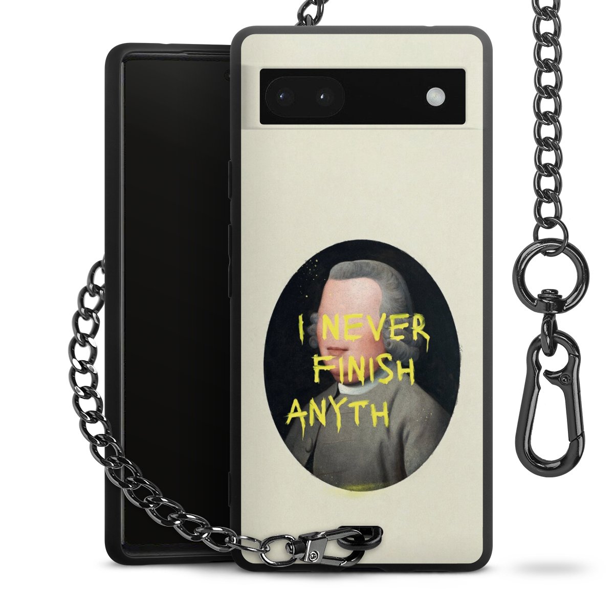 Die mattschwarze Silikon-Handyhülle besteht aus robustem TPU (thermoplastisches Polyurethan). Sie ist flexibel und schützt Dein Smartphone vor Stößen und Kratzern. Die Kette sowie der Karabinerhaken sind aus Metall in Gunmetal-Optik gefertigt. Für dieses Produkt kommen ausschließlich TÜV-geprüfte Materialien zum Einsatz.
