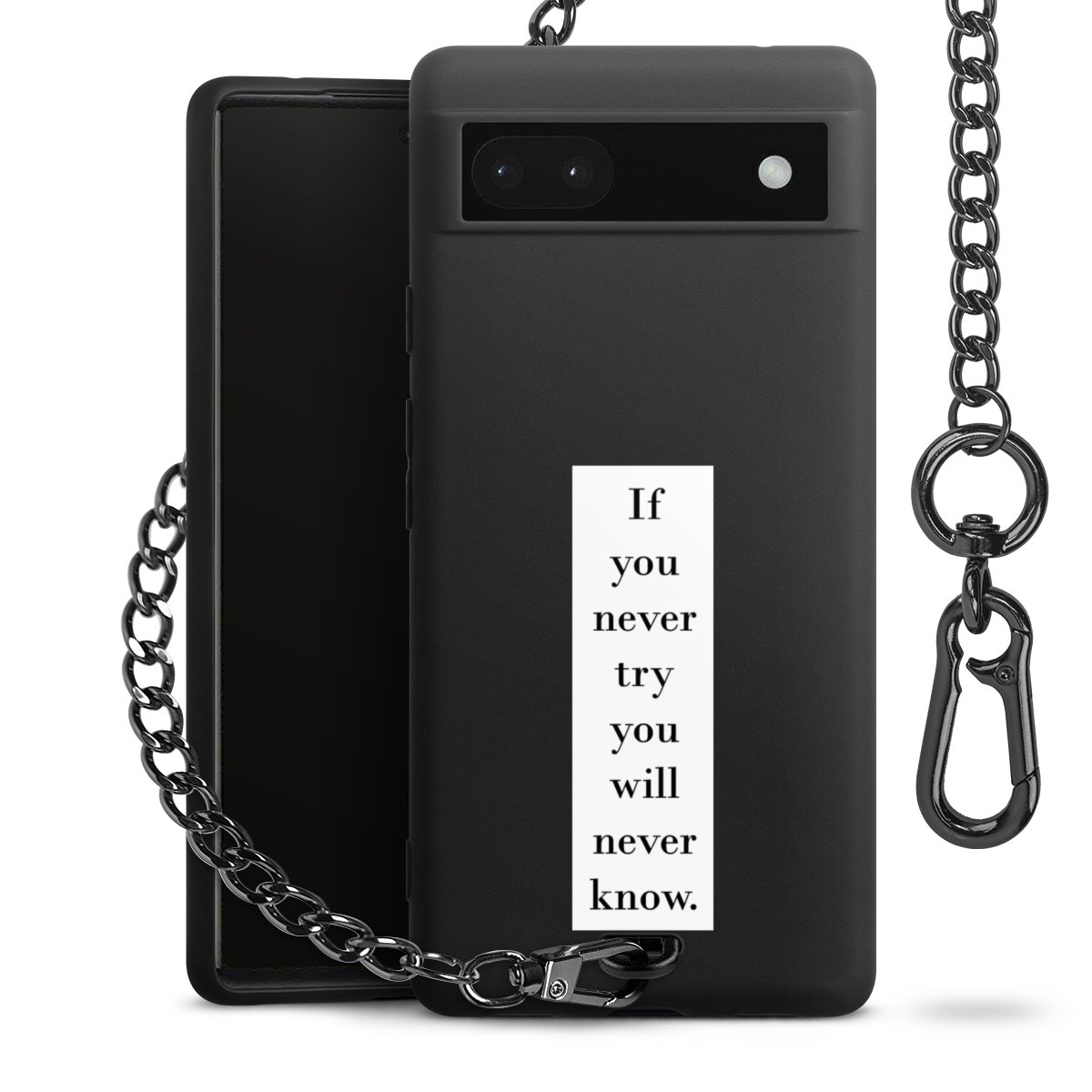 - Mattschwarze Handyhülle mit Metallkette