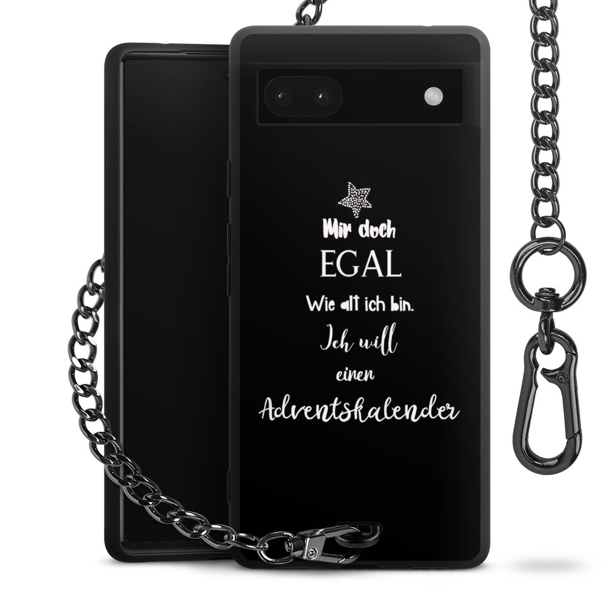 Die mattschwarze Silikon-Handyhülle besteht aus robustem TPU (thermoplastisches Polyurethan). Sie ist flexibel und schützt Dein Smartphone vor Stößen und Kratzern. Die Kette sowie der Karabinerhaken sind aus Metall in Gunmetal-Optik gefertigt. Für dieses Produkt kommen ausschließlich TÜV-geprüfte Materialien zum Einsatz.