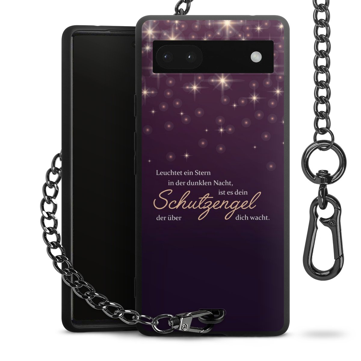- Mattschwarze Handyhülle mit Metallkette