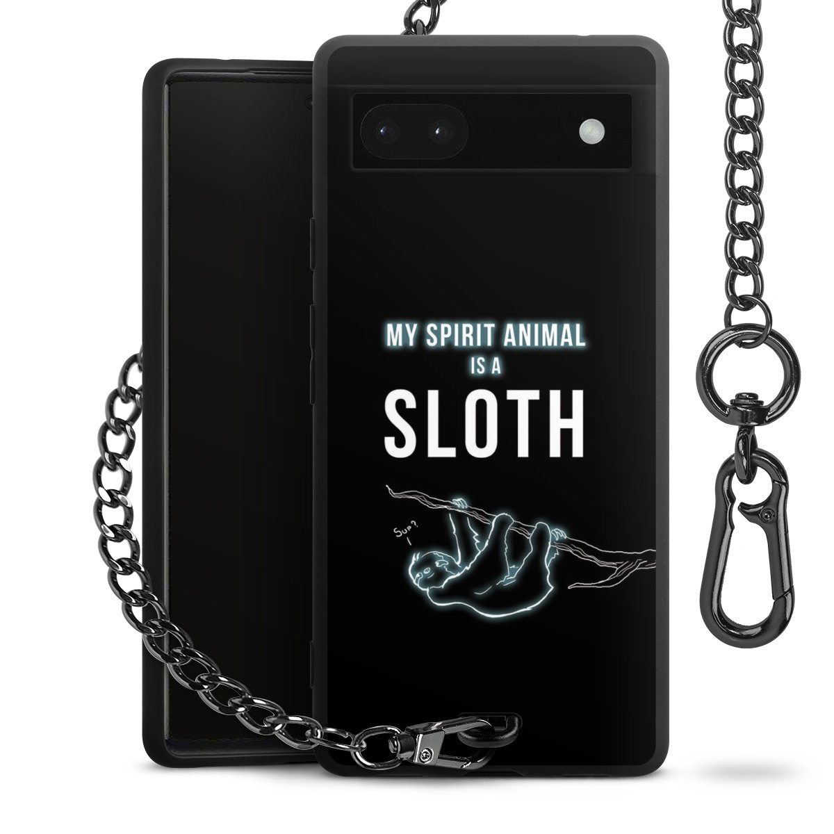 Die mattschwarze Silikon-Handyhülle besteht aus robustem TPU (thermoplastisches Polyurethan). Sie ist flexibel und schützt Dein Smartphone vor Stößen und Kratzern. Die Kette sowie der Karabinerhaken sind aus Metall in Gunmetal-Optik gefertigt. Für dieses Produkt kommen ausschließlich TÜV-geprüfte Materialien zum Einsatz.
