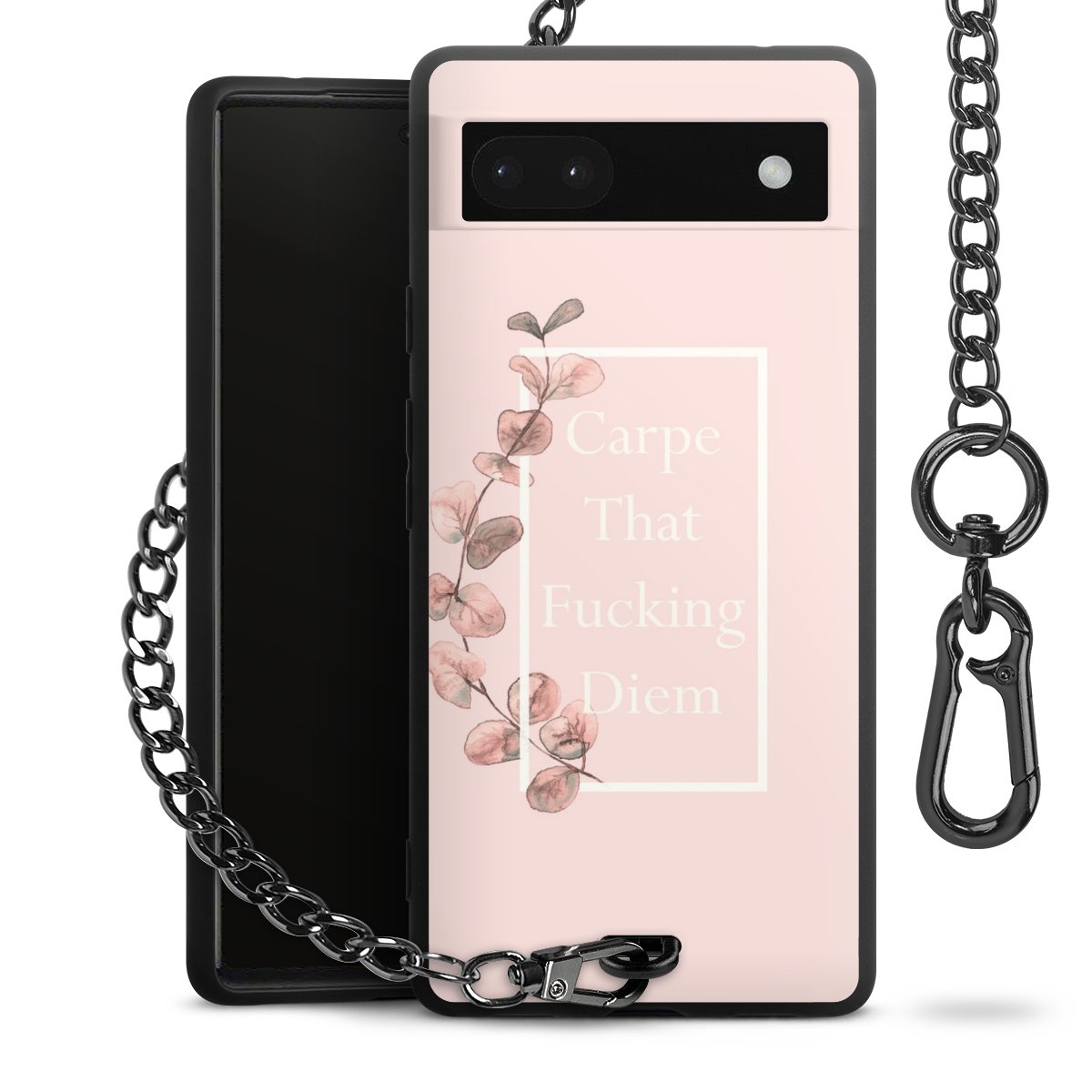 Die mattschwarze Silikon-Handyhülle besteht aus robustem TPU (thermoplastisches Polyurethan). Sie ist flexibel und schützt Dein Smartphone vor Stößen und Kratzern. Die Kette sowie der Karabinerhaken sind aus Metall in Gunmetal-Optik gefertigt. Für dieses Produkt kommen ausschließlich TÜV-geprüfte Materialien zum Einsatz.