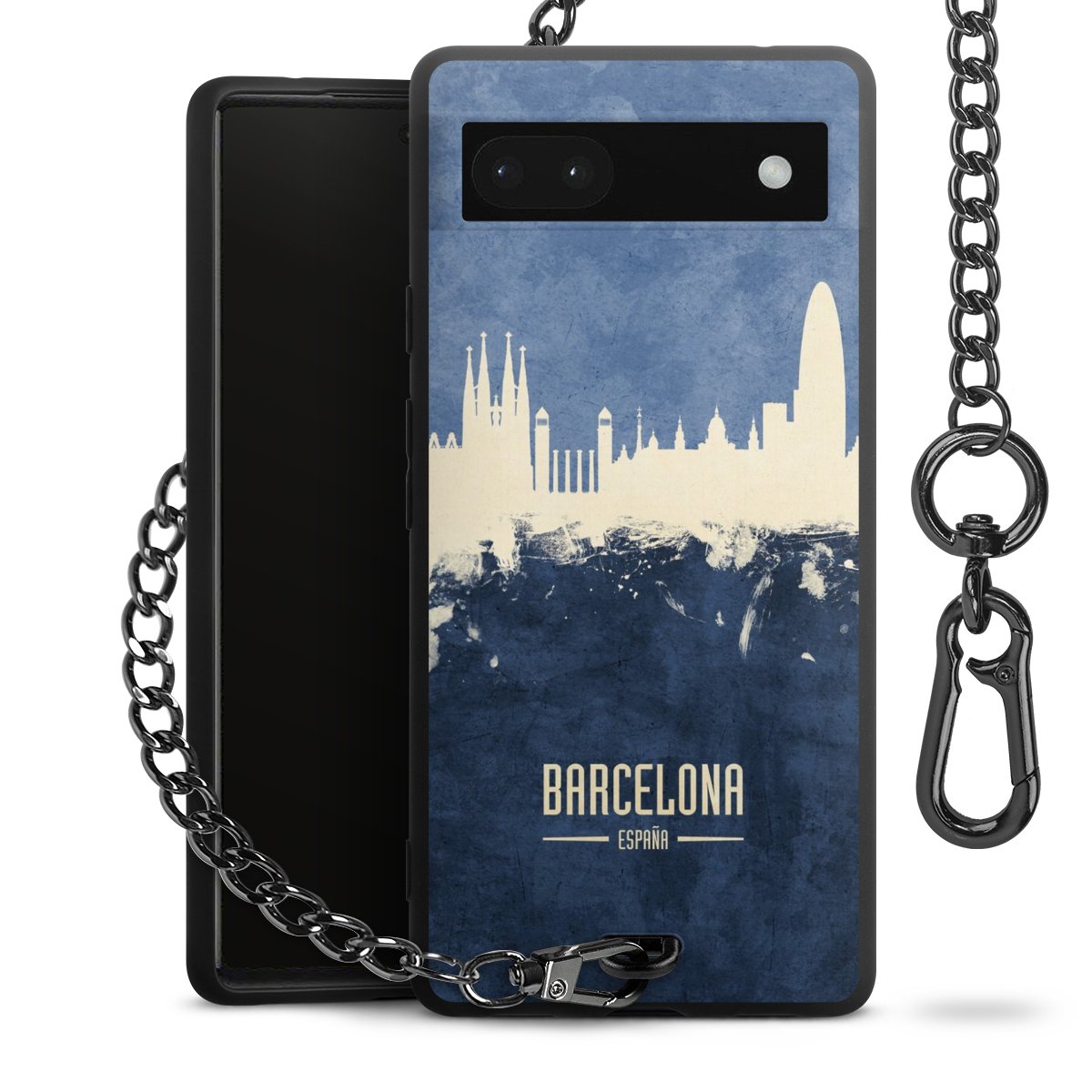 Die mattschwarze Silikon-Handyhülle besteht aus robustem TPU (thermoplastisches Polyurethan). Sie ist flexibel und schützt Dein Smartphone vor Stößen und Kratzern. Die Kette sowie der Karabinerhaken sind aus Metall in Gunmetal-Optik gefertigt. Für dieses Produkt kommen ausschließlich TÜV-geprüfte Materialien zum Einsatz.