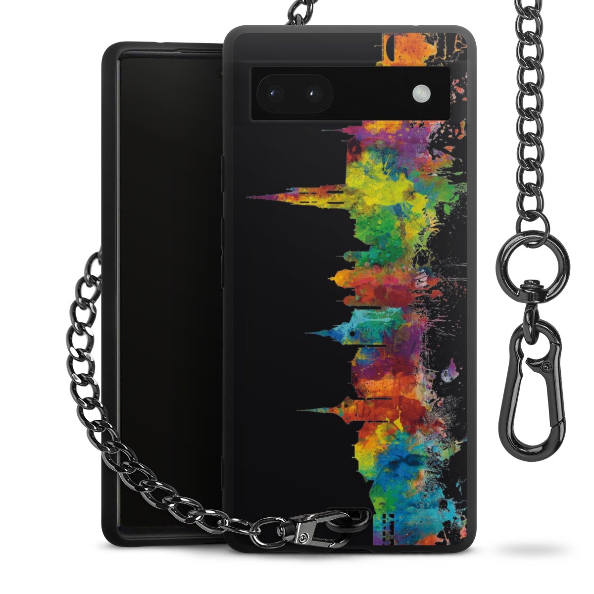 Die mattschwarze Silikon-Handyhülle besteht aus robustem TPU (thermoplastisches Polyurethan). Sie ist flexibel und schützt Dein Smartphone vor Stößen und Kratzern. Die Kette sowie der Karabinerhaken sind aus Metall in Gunmetal-Optik gefertigt. Für dieses Produkt kommen ausschließlich TÜV-geprüfte Materialien zum Einsatz.
