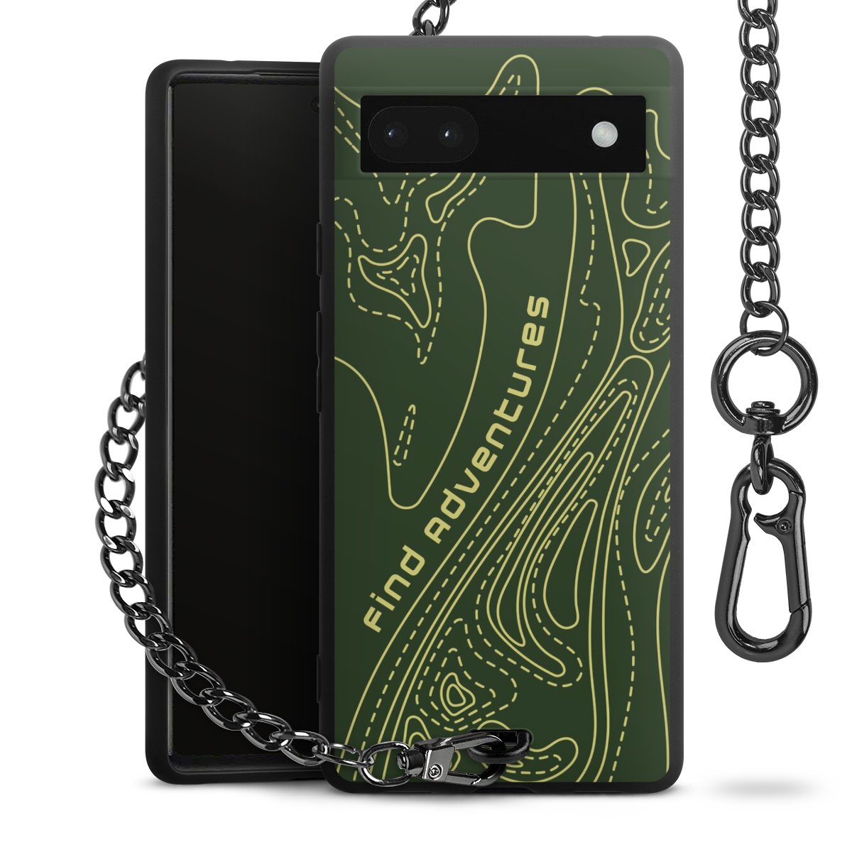 Die mattschwarze Silikon-Handyhülle besteht aus robustem TPU (thermoplastisches Polyurethan). Sie ist flexibel und schützt Dein Smartphone vor Stößen und Kratzern. Die Kette sowie der Karabinerhaken sind aus Metall in Gunmetal-Optik gefertigt. Für dieses Produkt kommen ausschließlich TÜV-geprüfte Materialien zum Einsatz.