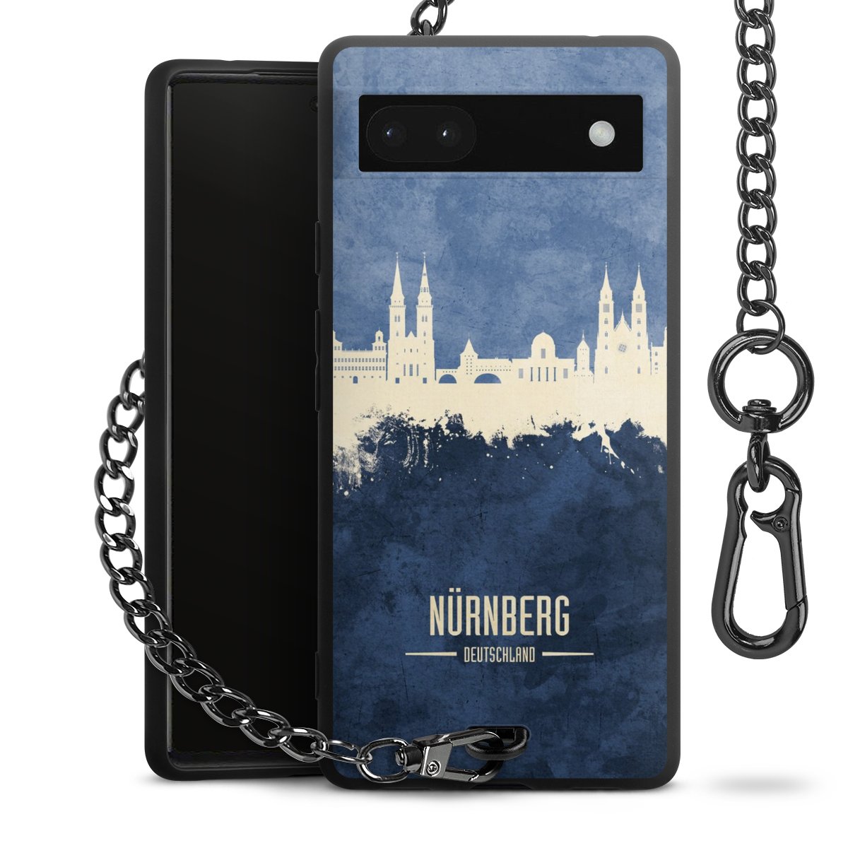Die mattschwarze Silikon-Handyhülle besteht aus robustem TPU (thermoplastisches Polyurethan). Sie ist flexibel und schützt Dein Smartphone vor Stößen und Kratzern. Die Kette sowie der Karabinerhaken sind aus Metall in Gunmetal-Optik gefertigt. Für dieses Produkt kommen ausschließlich TÜV-geprüfte Materialien zum Einsatz.