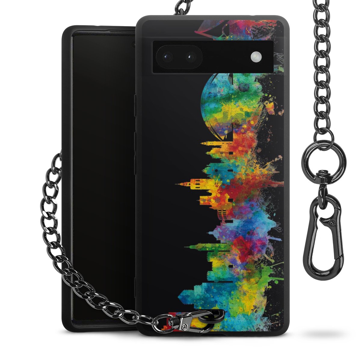 Die mattschwarze Silikon-Handyhülle besteht aus robustem TPU (thermoplastisches Polyurethan). Sie ist flexibel und schützt Dein Smartphone vor Stößen und Kratzern. Die Kette sowie der Karabinerhaken sind aus Metall in Gunmetal-Optik gefertigt. Für dieses Produkt kommen ausschließlich TÜV-geprüfte Materialien zum Einsatz.