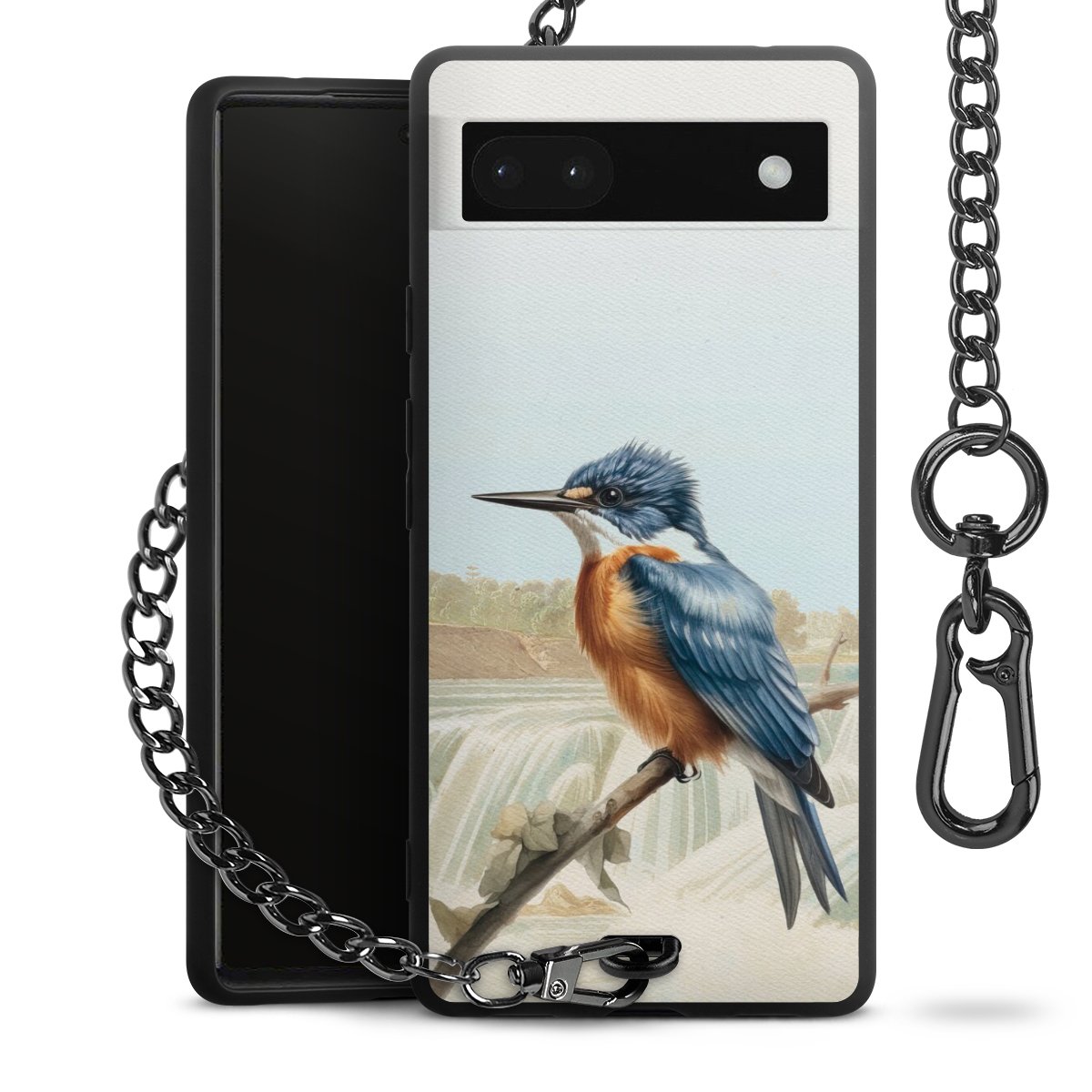 • Mattschwarze Handyhülle mit Metallkette
