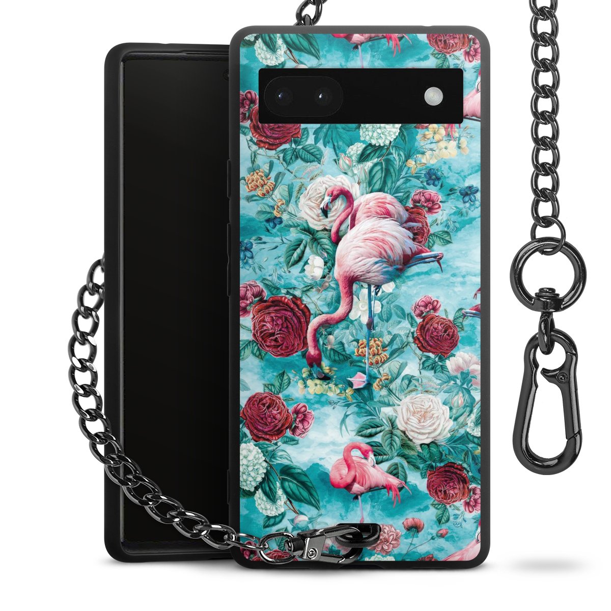 Die mattschwarze Silikon-Handyhülle besteht aus robustem TPU (thermoplastisches Polyurethan). Sie ist flexibel und schützt Dein Smartphone vor Stößen und Kratzern. Die Kette sowie der Karabinerhaken sind aus Metall in Gunmetal-Optik gefertigt. Für dieses Produkt kommen ausschließlich TÜV-geprüfte Materialien zum Einsatz.