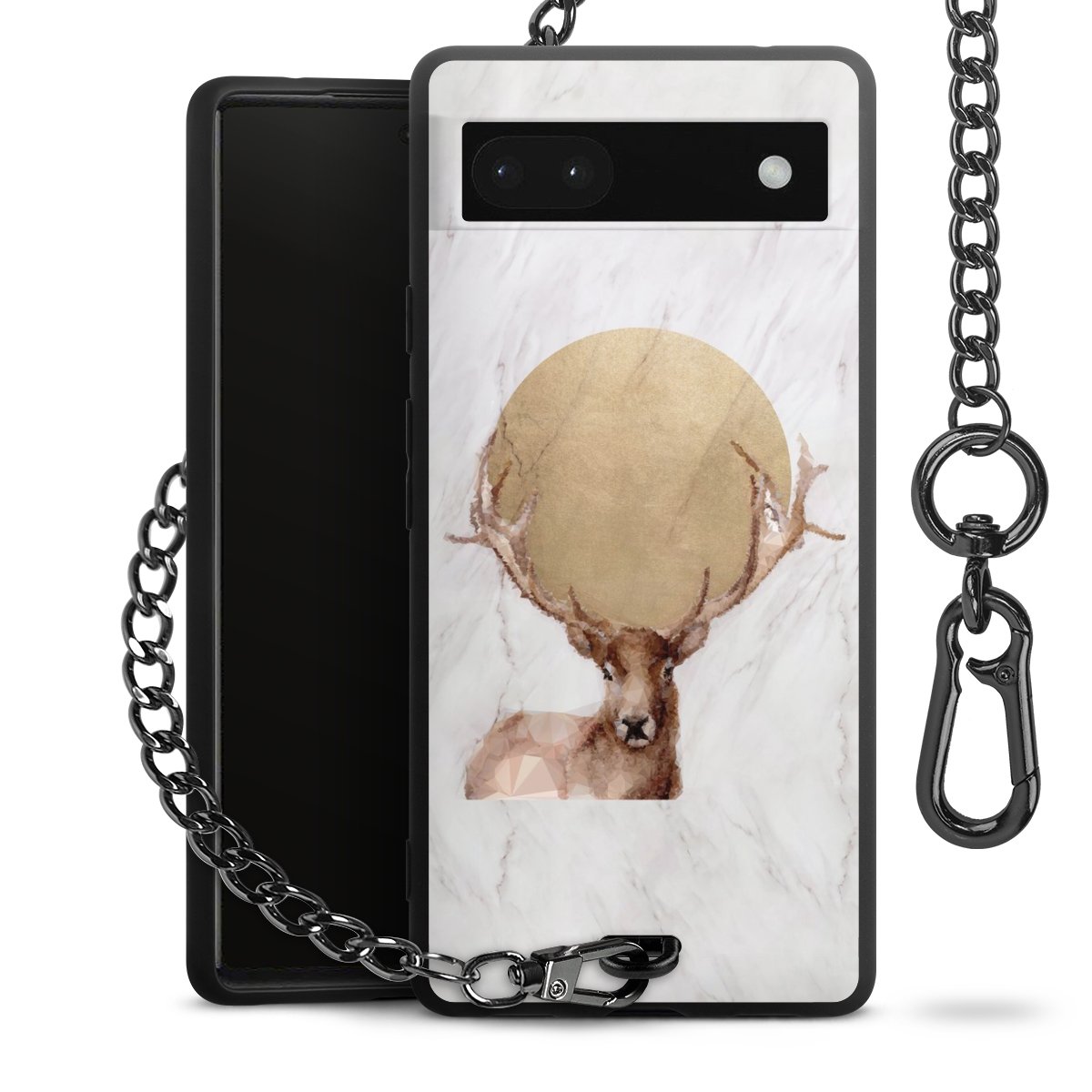 Die mattschwarze Silikon-Handyhülle besteht aus robustem TPU (thermoplastisches Polyurethan). Sie ist flexibel und schützt Dein Smartphone vor Stößen und Kratzern. Die Kette sowie der Karabinerhaken sind aus Metall in Gunmetal-Optik gefertigt. Für dieses Produkt kommen ausschließlich TÜV-geprüfte Materialien zum Einsatz.