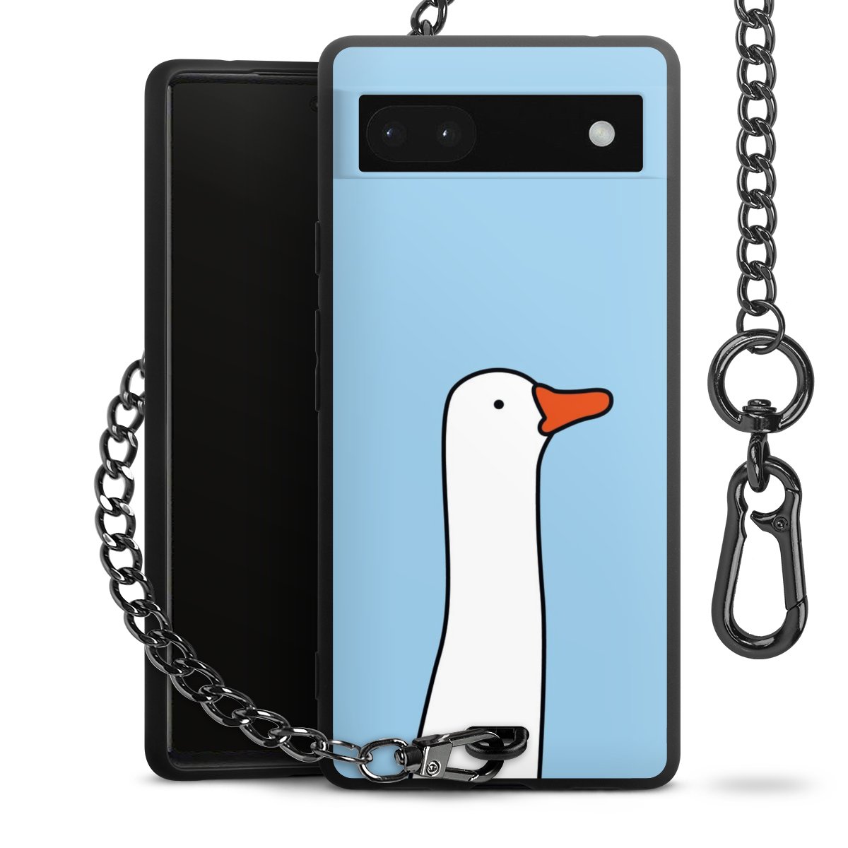 Die mattschwarze Silikon-Handyhülle besteht aus robustem TPU (thermoplastisches Polyurethan). Sie ist flexibel und schützt Dein Smartphone vor Stößen und Kratzern. Die Kette sowie der Karabinerhaken sind aus Metall in Gunmetal-Optik gefertigt. Für dieses Produkt kommen ausschließlich TÜV-geprüfte Materialien zum Einsatz.