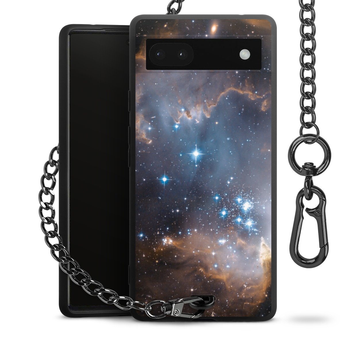 - Mattschwarze Handyhülle mit Metallkette