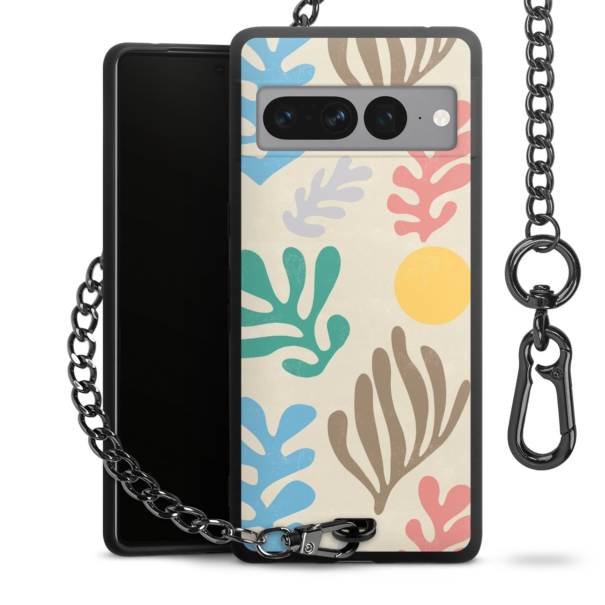 Die mattschwarze Silikon-Handyhülle besteht aus robustem TPU (thermoplastisches Polyurethan). Sie ist flexibel und schützt Dein Smartphone vor Stößen und Kratzern. Die Kette sowie der Karabinerhaken sind aus Metall in Gunmetal-Optik gefertigt. Für dieses Produkt kommen ausschließlich TÜV-geprüfte Materialien zum Einsatz.