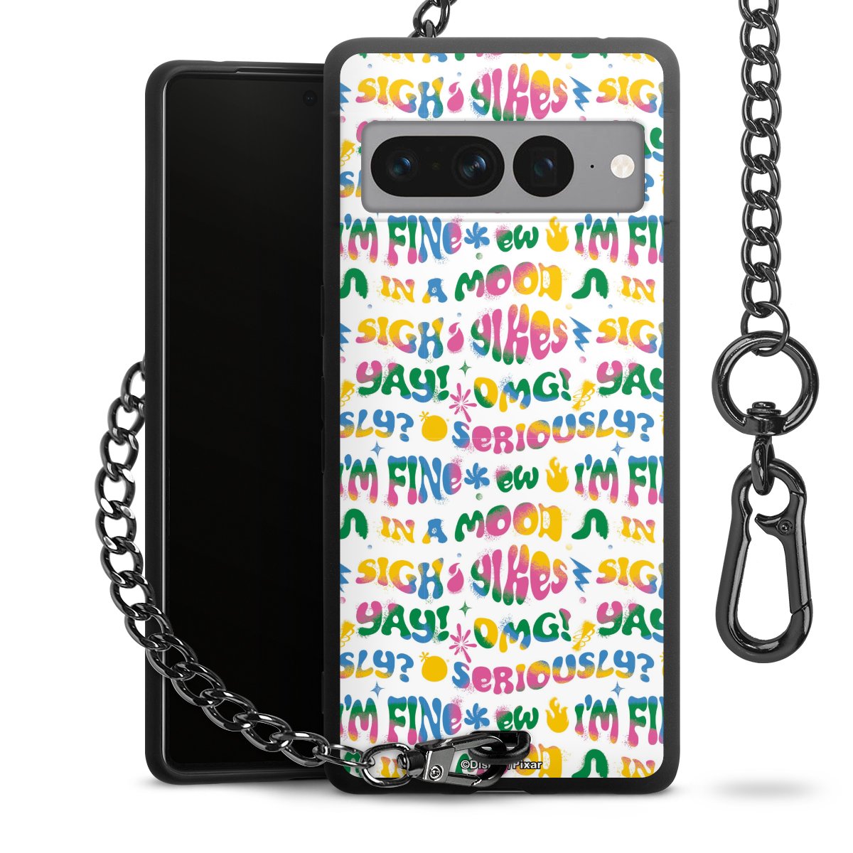 Die mattschwarze Silikon-Handyhülle besteht aus robustem TPU (thermoplastisches Polyurethan). Sie ist flexibel und schützt Dein Smartphone vor Stößen und Kratzern. Die Kette sowie der Karabinerhaken sind aus Metall in Gunmetal-Optik gefertigt. Für dieses Produkt kommen ausschließlich TÜV-geprüfte Materialien zum Einsatz.