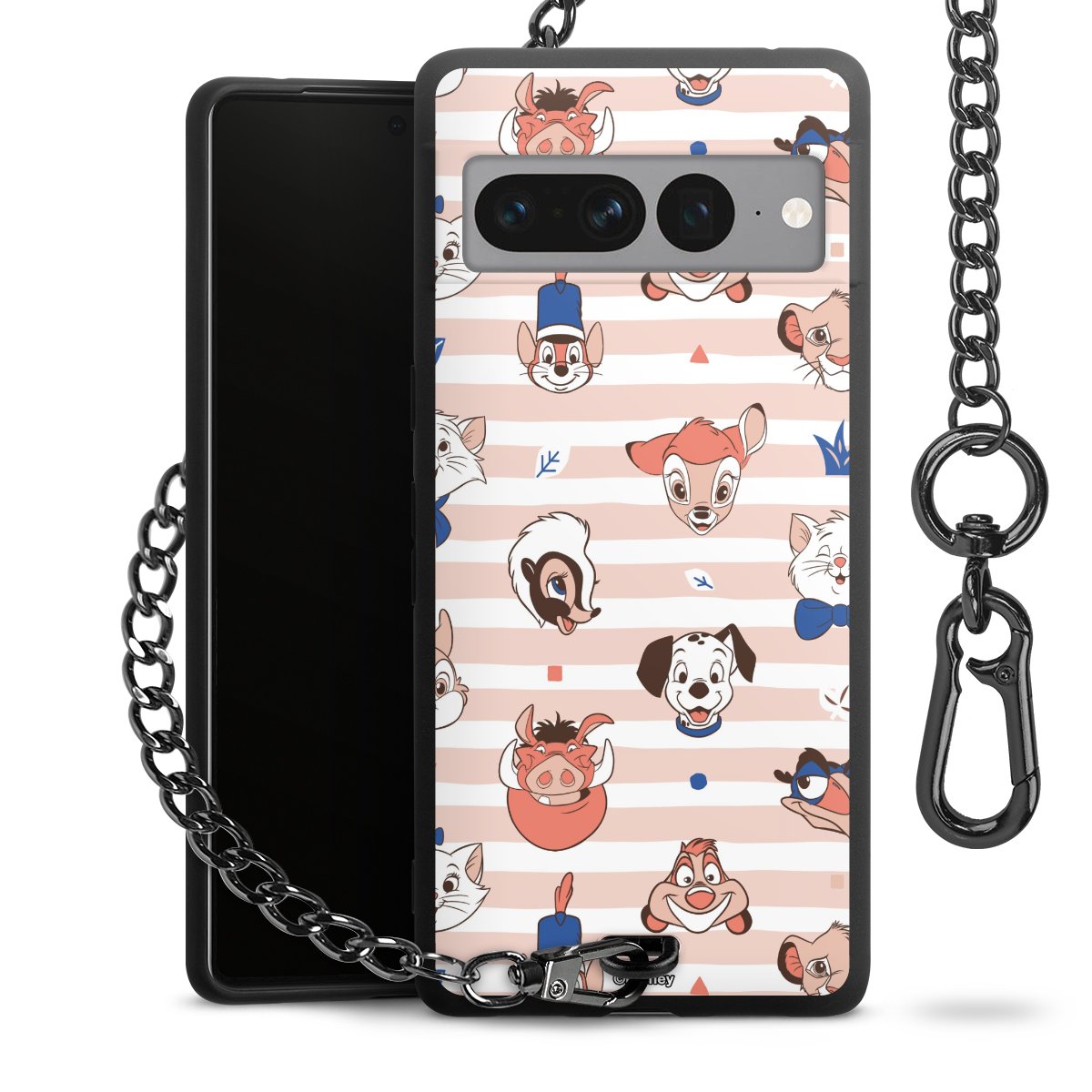 Die Handyhülle verfügt über eine mittig am unteren Rand platzierte Öse, an der die Metallkette stabil befestigt ist. Bestelle die Hülle einfach für Dein Smartphone-Modell, dann passt sie wie angegossen und Du brauchst sie bloß einmal anzudrücken. Handy in die Tasche, Karabiner an den Hosenbund – schon kann die Party starten.