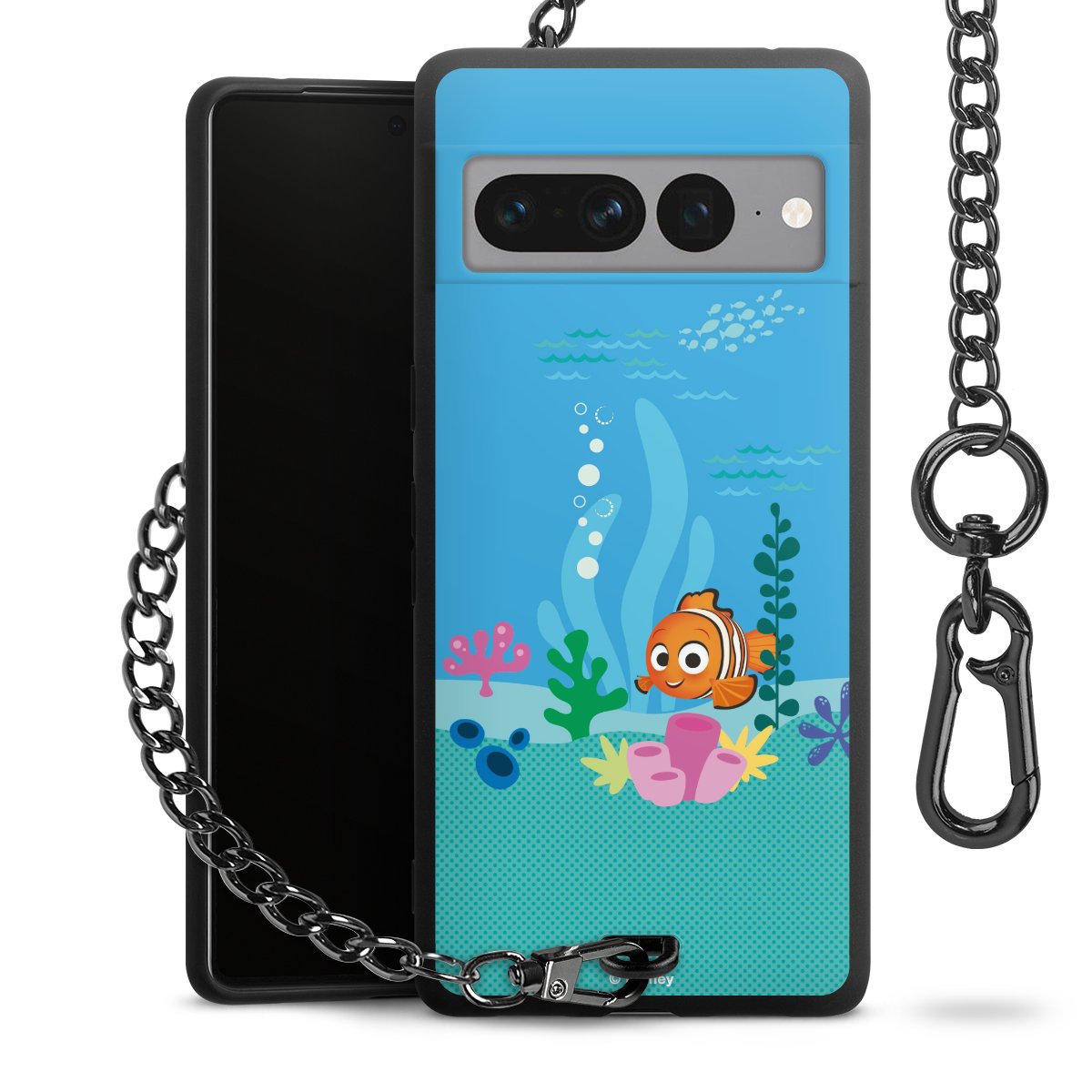 Die mattschwarze Silikon-Handyhülle besteht aus robustem TPU (thermoplastisches Polyurethan). Sie ist flexibel und schützt Dein Smartphone vor Stößen und Kratzern. Die Kette sowie der Karabinerhaken sind aus Metall in Gunmetal-Optik gefertigt. Für dieses Produkt kommen ausschließlich TÜV-geprüfte Materialien zum Einsatz.