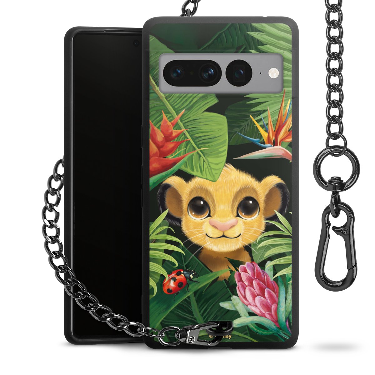 Die mattschwarze Silikon-Handyhülle besteht aus robustem TPU (thermoplastisches Polyurethan). Sie ist flexibel und schützt Dein Smartphone vor Stößen und Kratzern. Die Kette sowie der Karabinerhaken sind aus Metall in Gunmetal-Optik gefertigt. Für dieses Produkt kommen ausschließlich TÜV-geprüfte Materialien zum Einsatz.