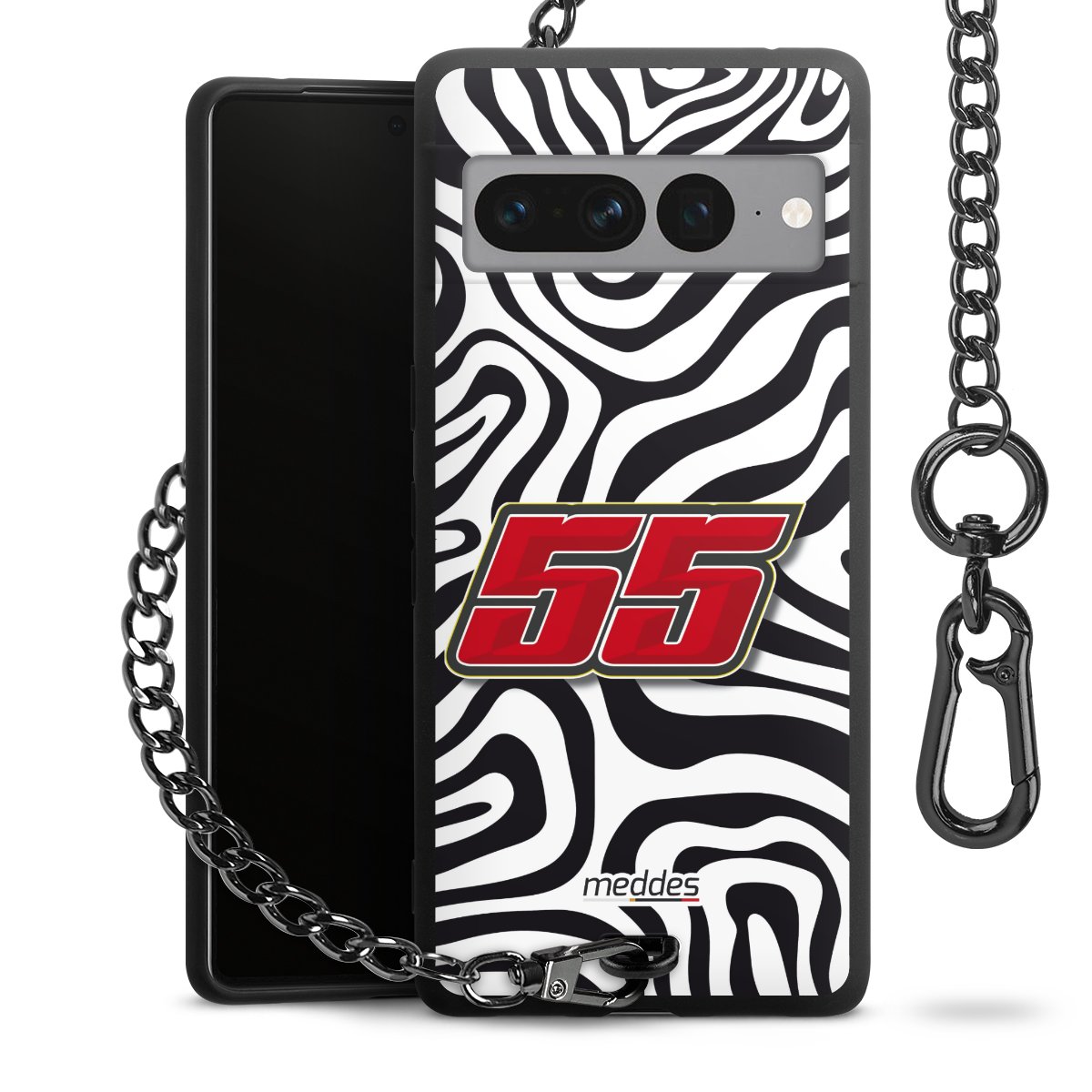 • Mattschwarze Handyhülle mit Metallkette