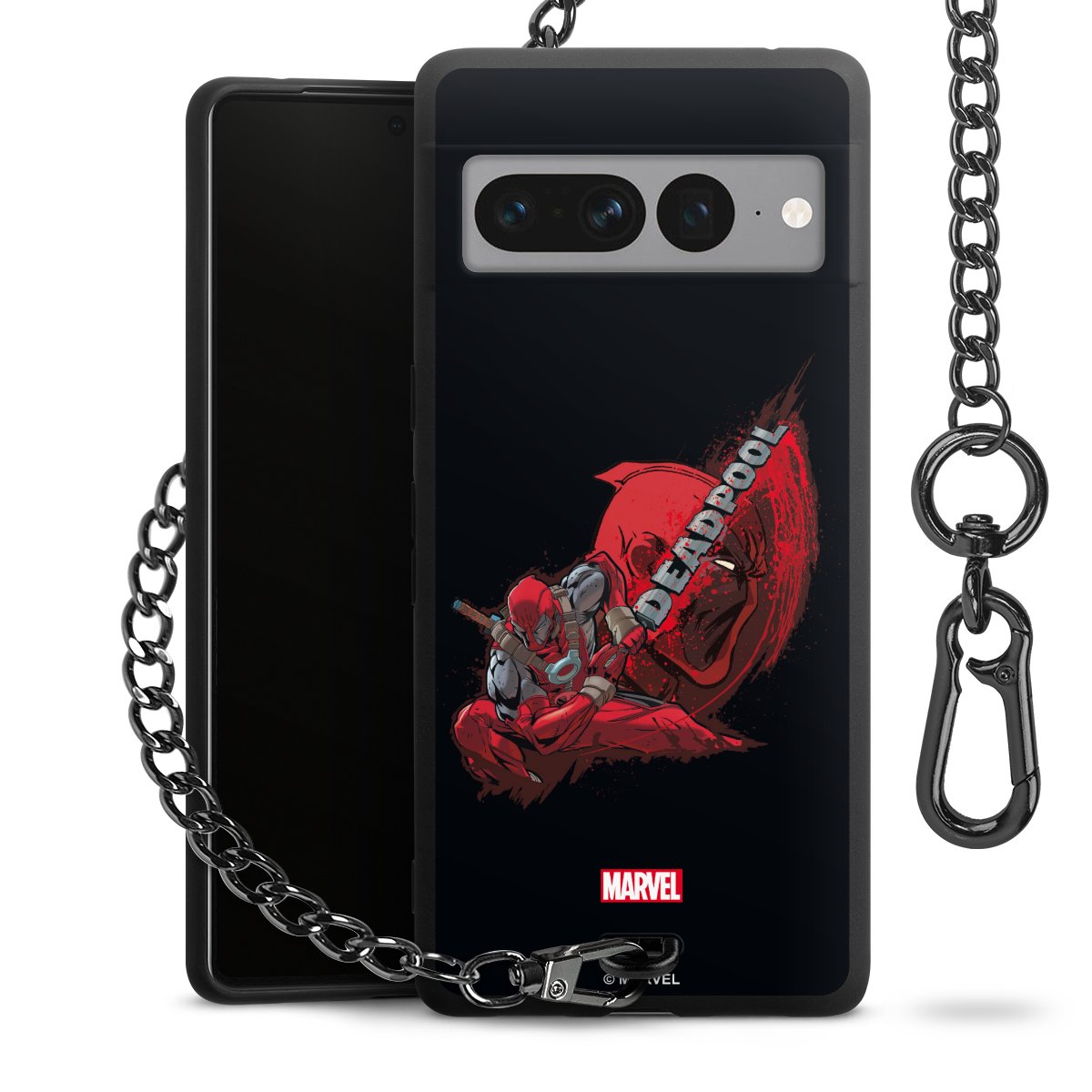 Die mattschwarze Silikon-Handyhülle besteht aus robustem TPU (thermoplastisches Polyurethan). Sie ist flexibel und schützt Dein Smartphone vor Stößen und Kratzern. Die Kette sowie der Karabinerhaken sind aus Metall in Gunmetal-Optik gefertigt. Für dieses Produkt kommen ausschließlich TÜV-geprüfte Materialien zum Einsatz.